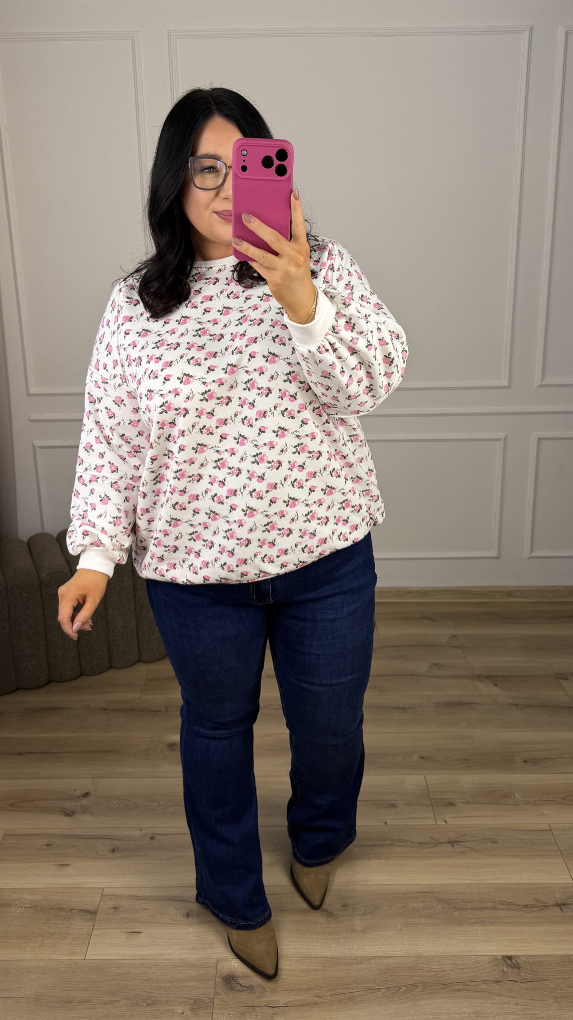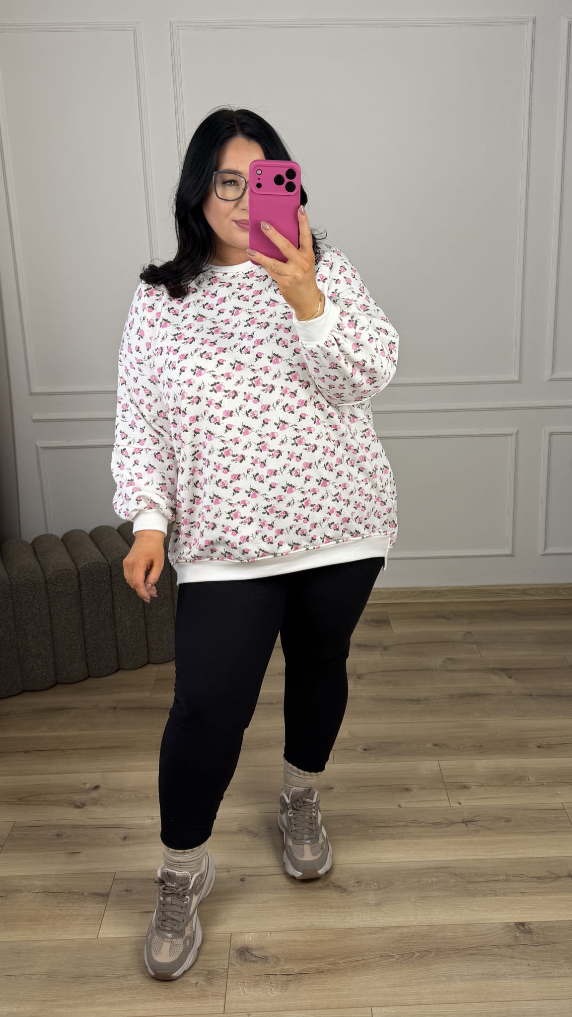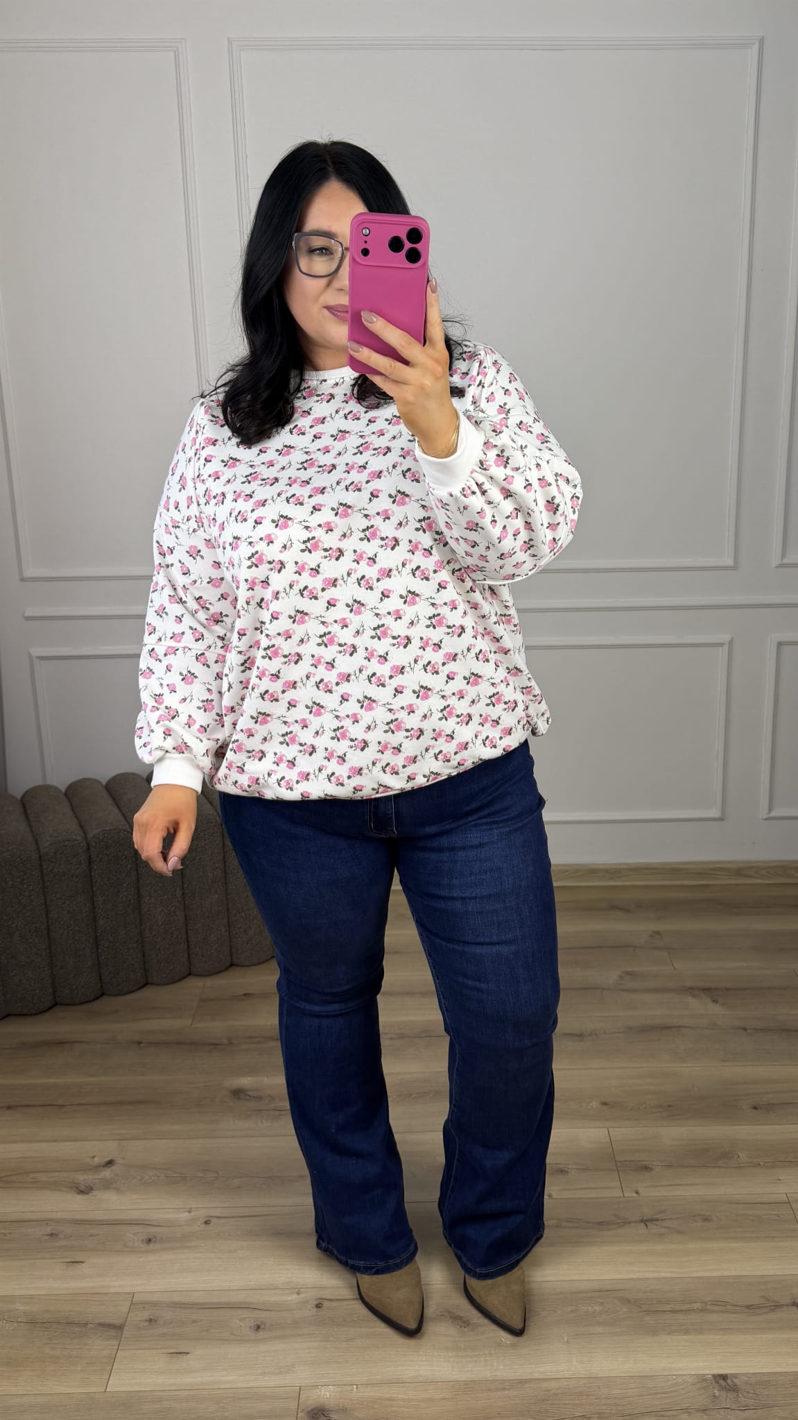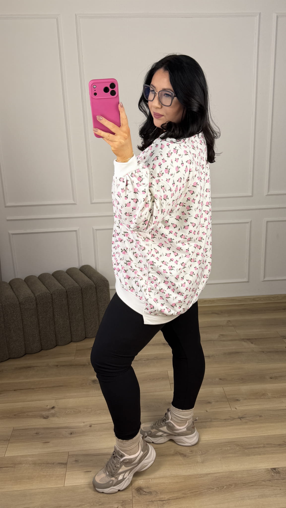 Stylowa bluza o luźnym kroju oversize-owym w kwiatowy wzór, która łączy wygodę z wyjątkowym designem. Model dzięki swojemu wzorowi świetnie sprawdzi się w casualowych stylizacjach jak i bardziej kobiecych. Zakończona ściągaczem, lekko dłuższy tył z bawełny pętelkowej. Starannie uszyta z dbałością o detale.