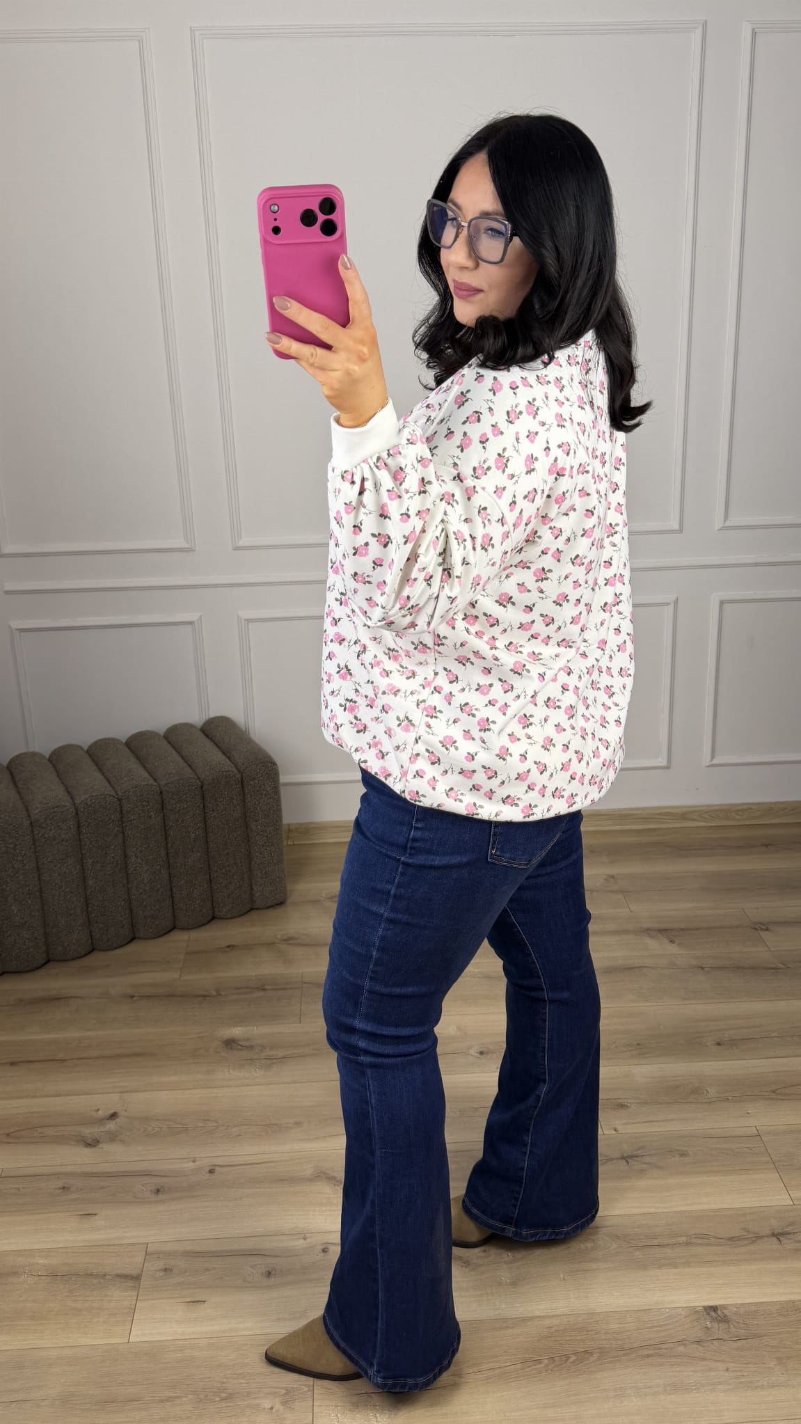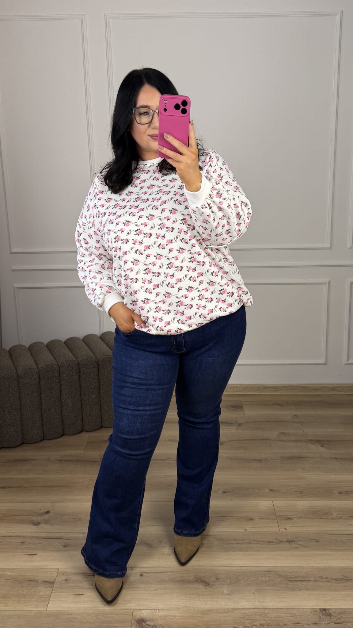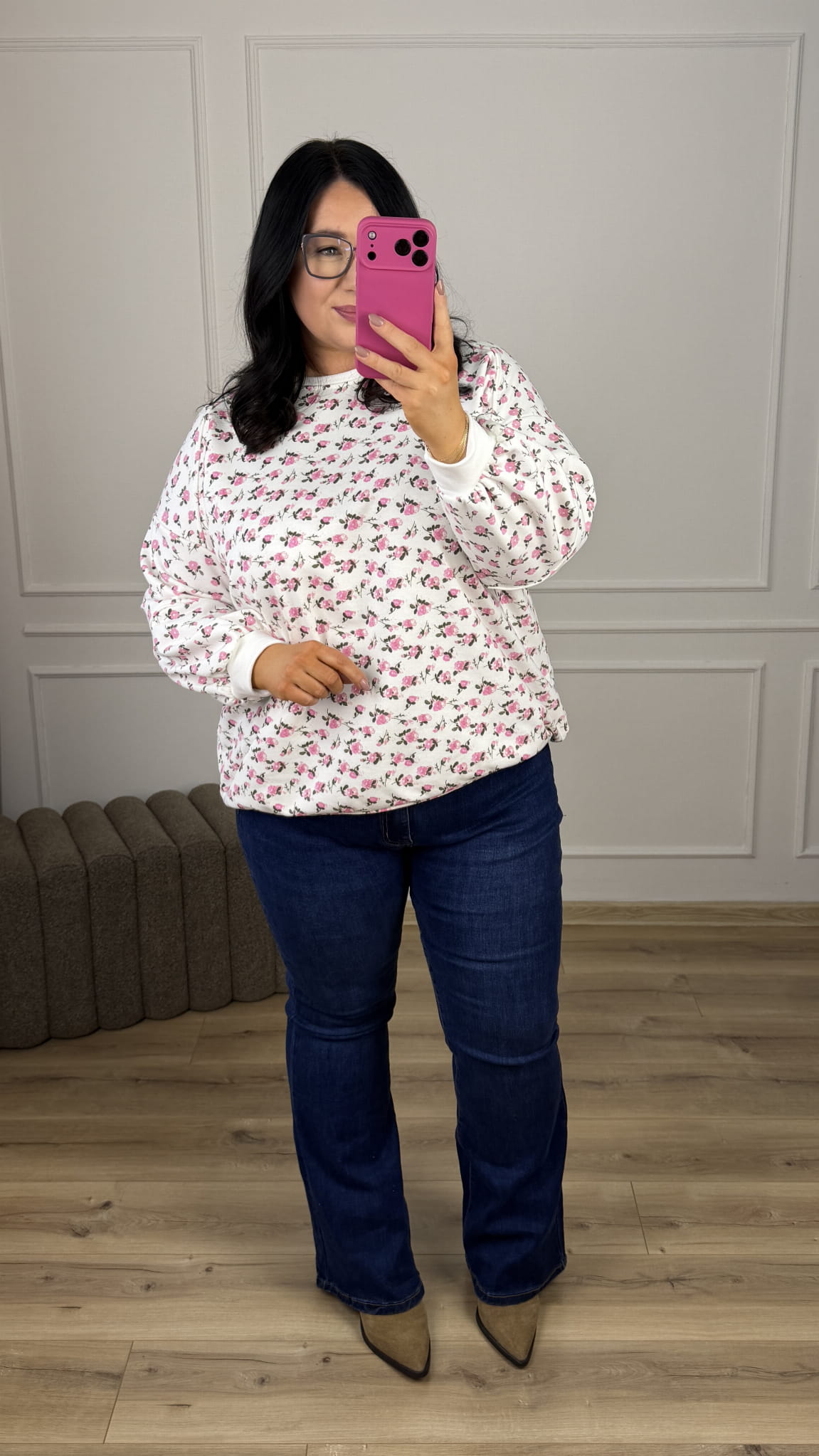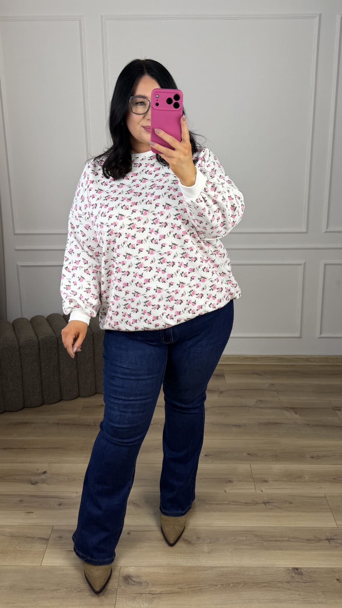 Stylowa bluza o luźnym kroju oversize-owym w kwiatowy wzór, która łączy wygodę z wyjątkowym designem. Model dzięki swojemu wzorowi świetnie sprawdzi się w casualowych stylizacjach jak i bardziej kobiecych. Zakończona ściągaczem, lekko dłuższy tył z bawełny pętelkowej. Starannie uszyta z dbałością o detale.