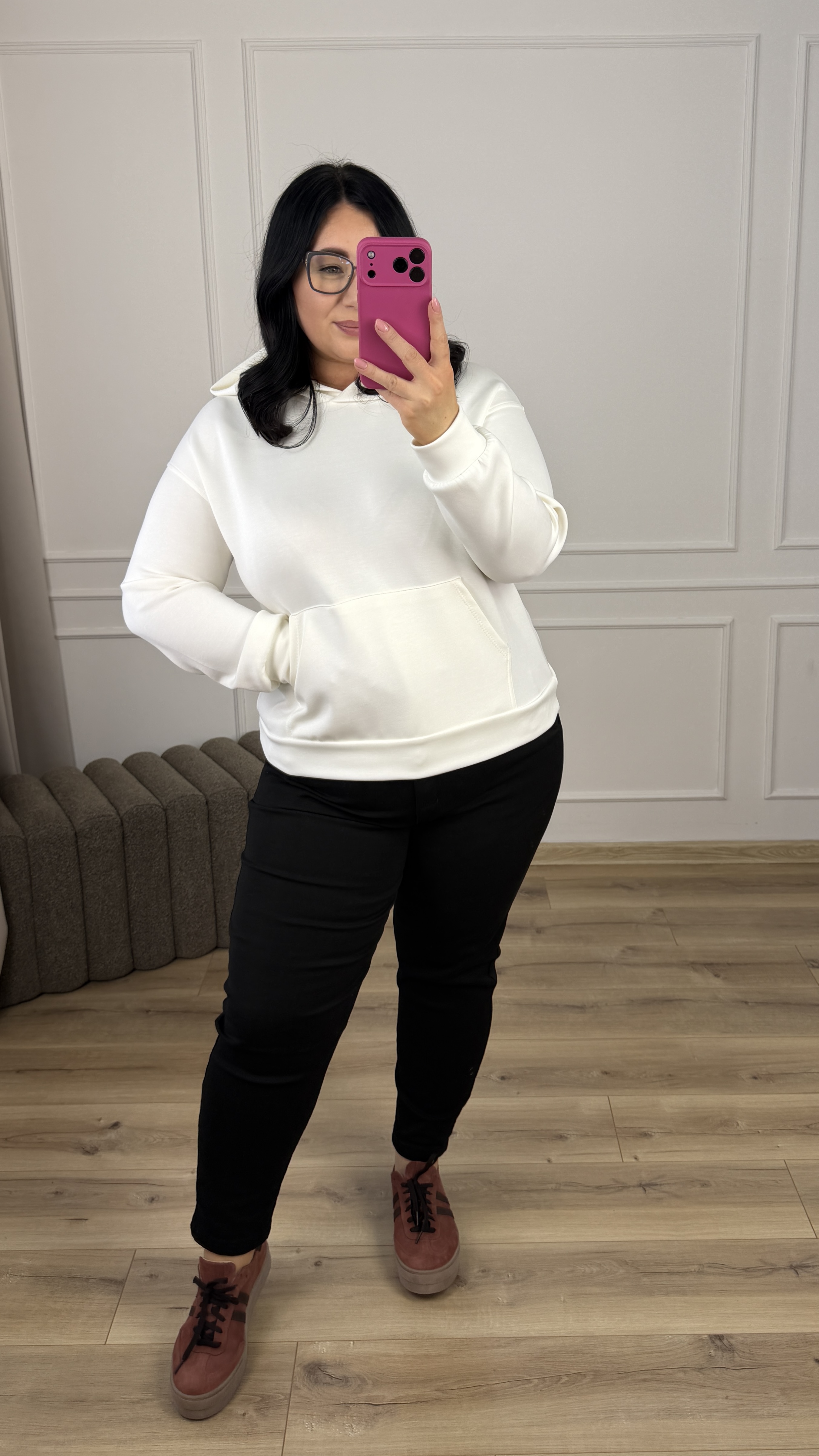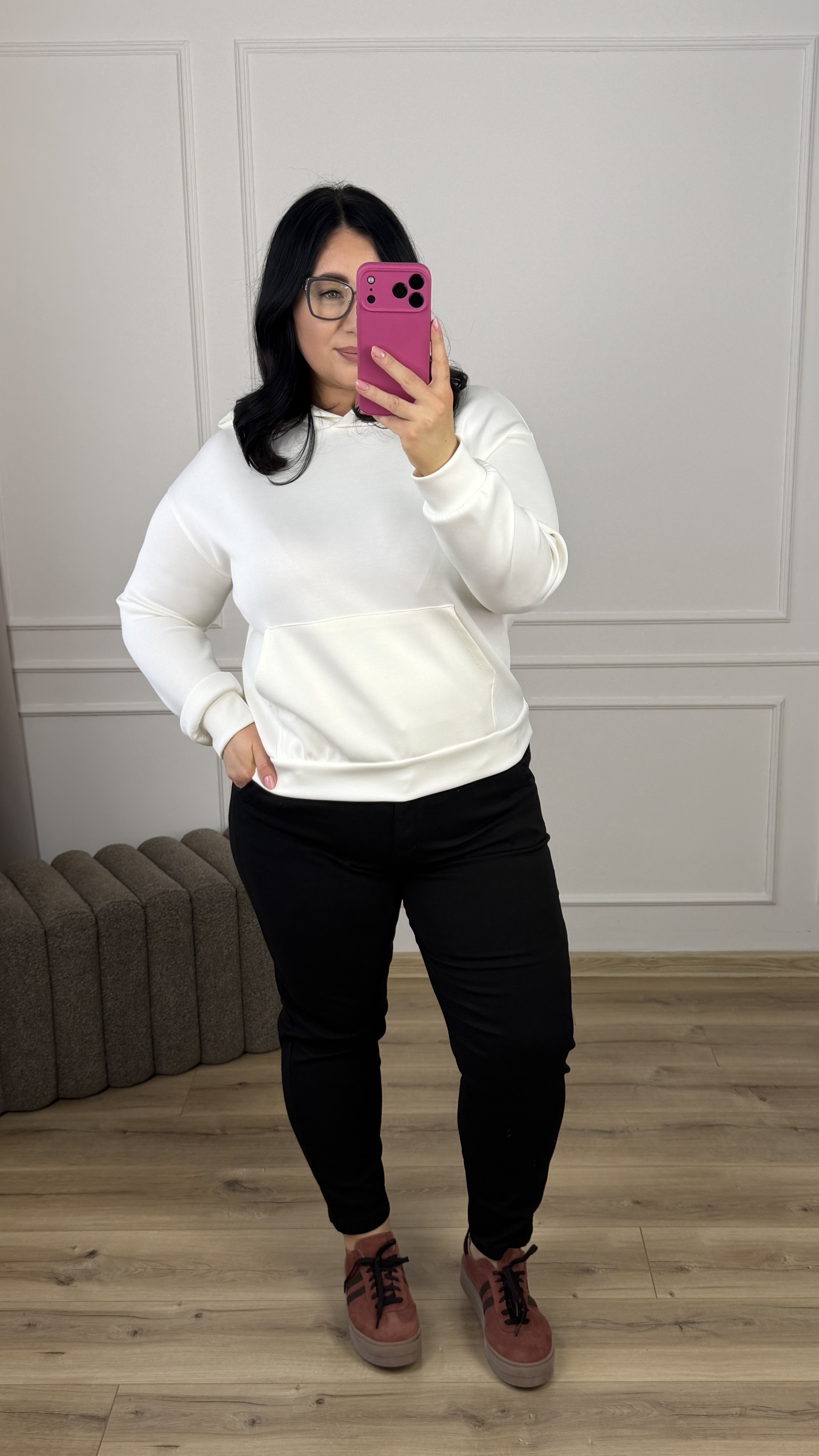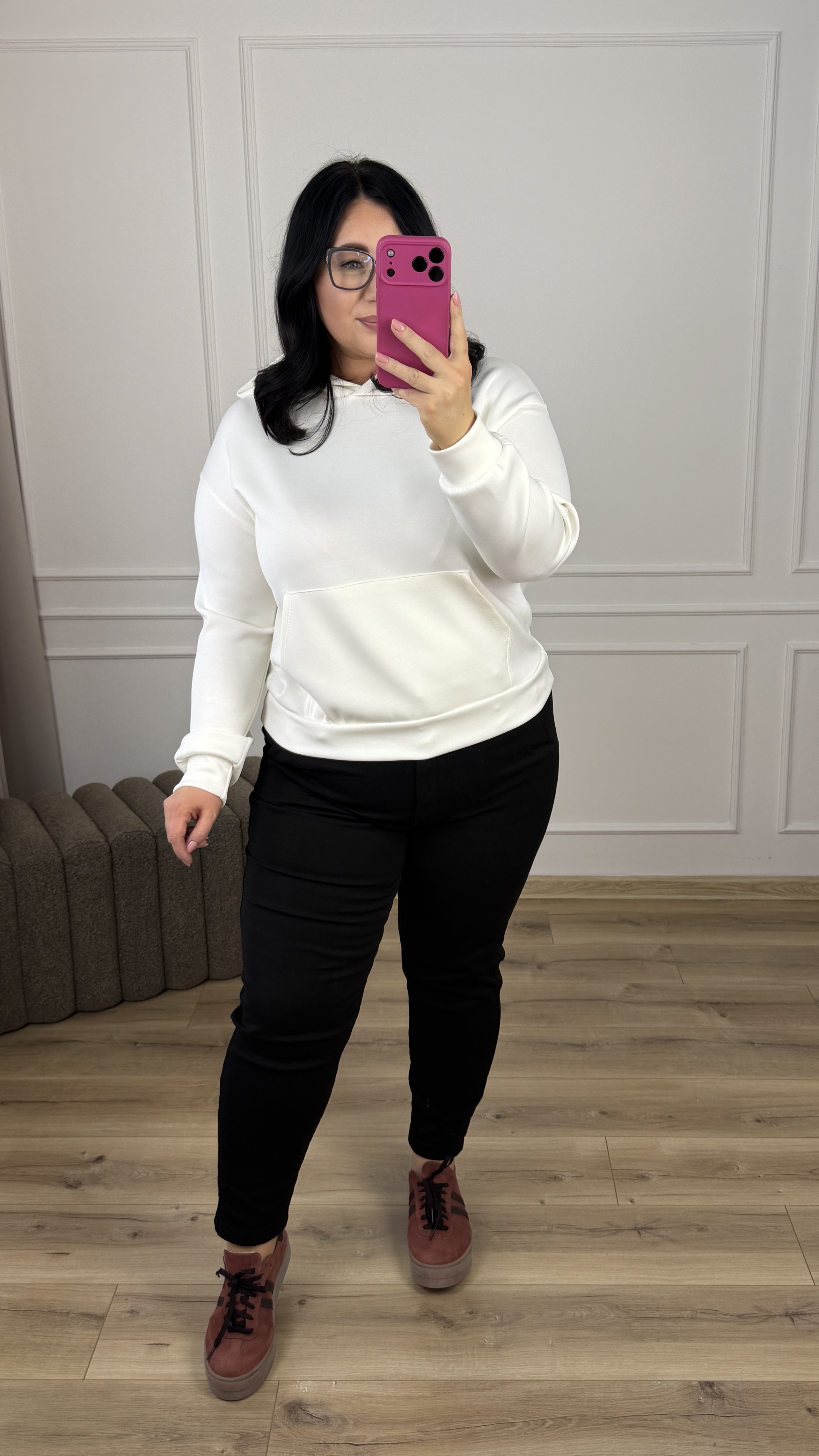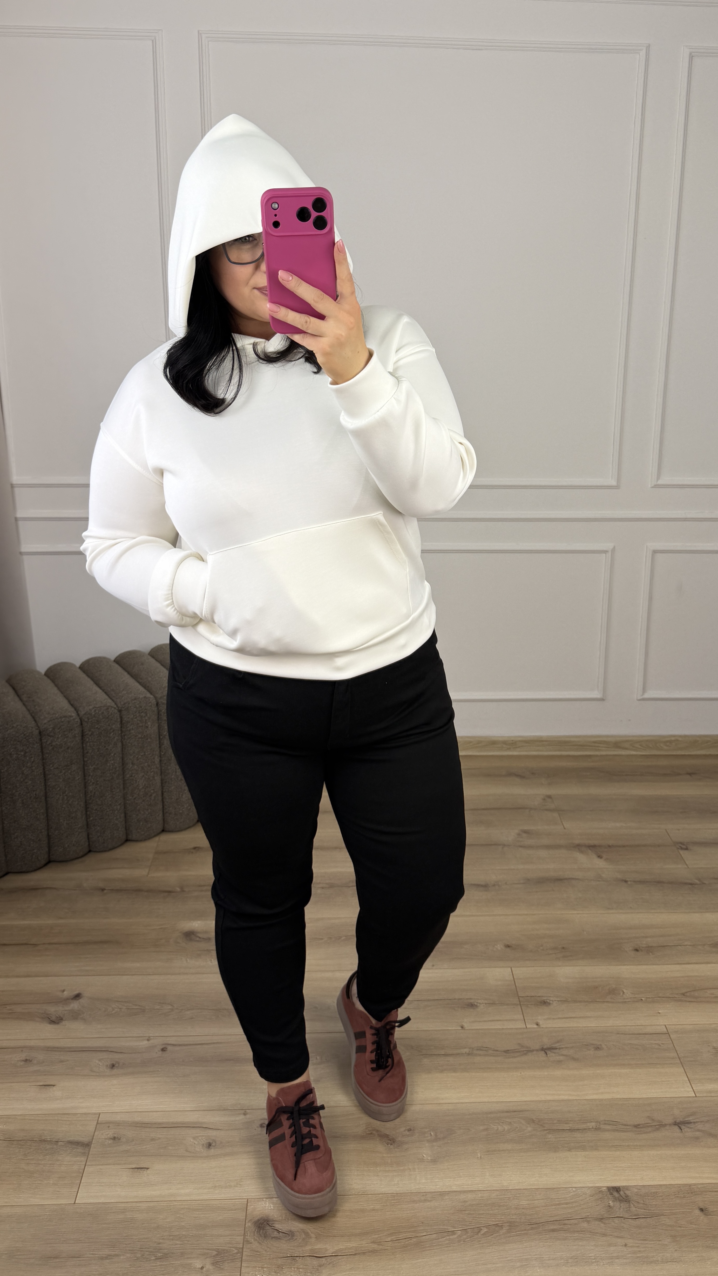 Masełkowa bluza typu kangurka - z dużą kieszenią z przodu. Bluza posiada długi rękaw zakończony ściągaczem oraz ściągacz u dołu oraz kaptur. Model z przyjemnego masełkowego materiału. Klasyczny model wysokiej jakości, starannie uszyty z dbałością o detale świetnie sprawdzi się w wiosennych stylizacjach.