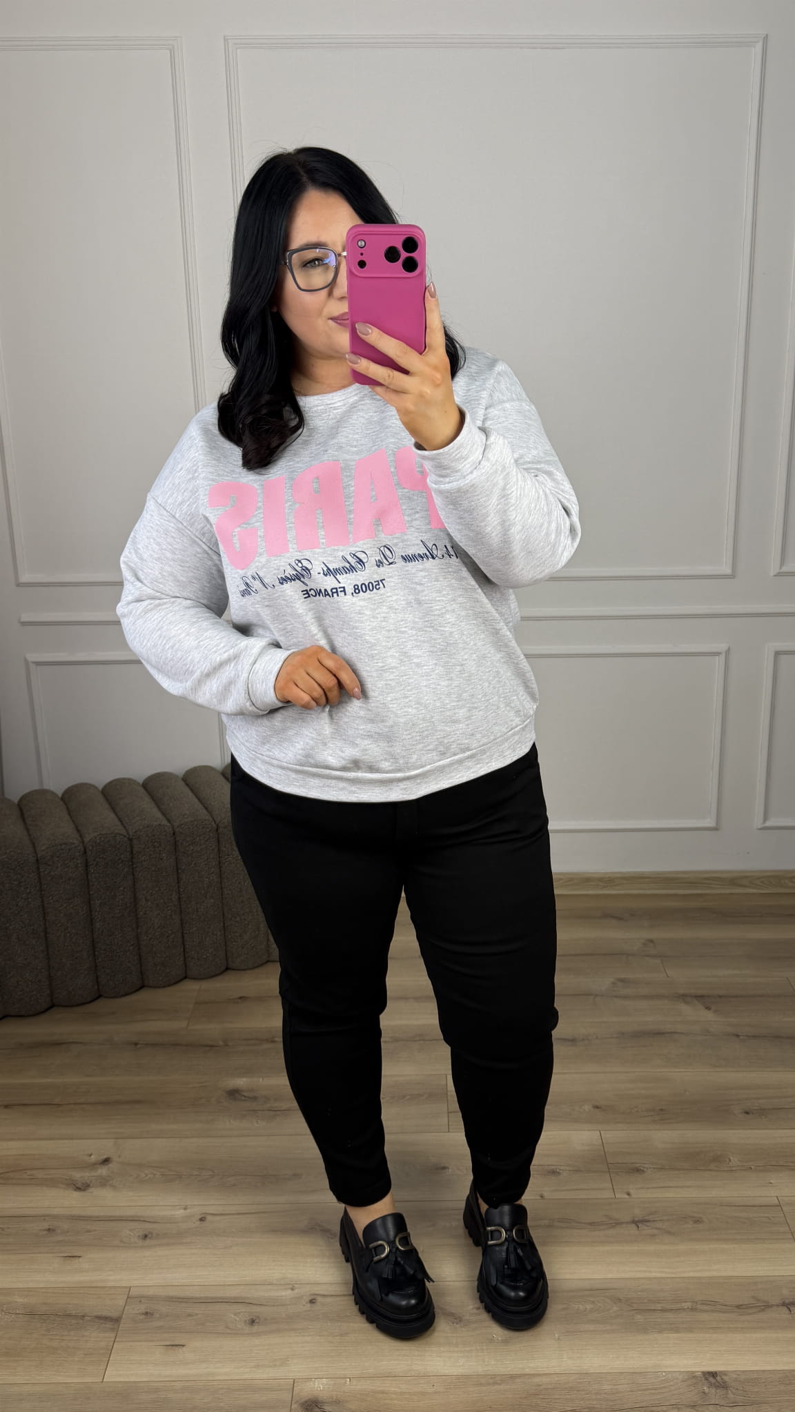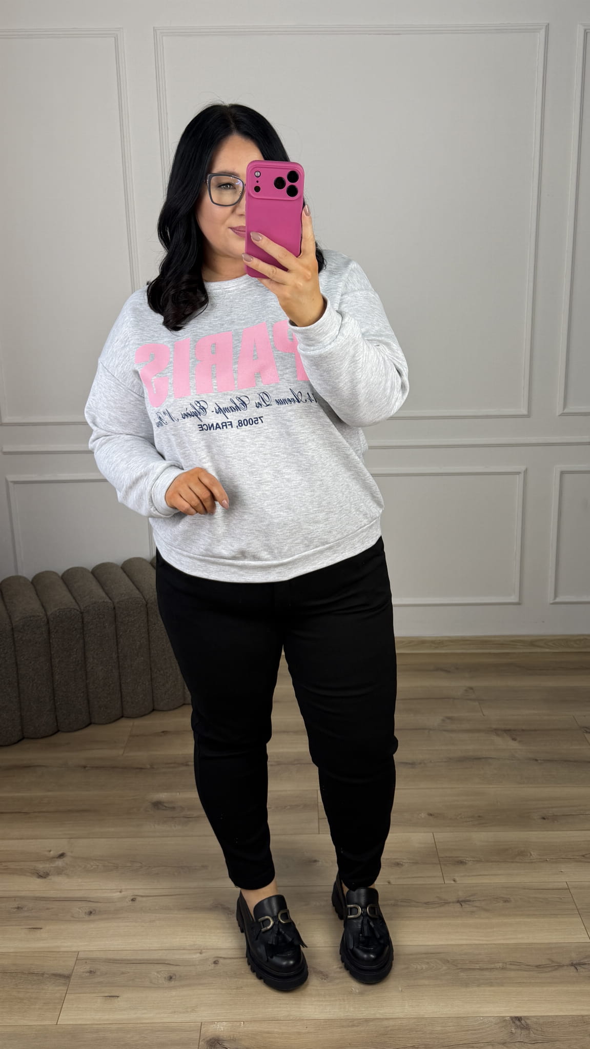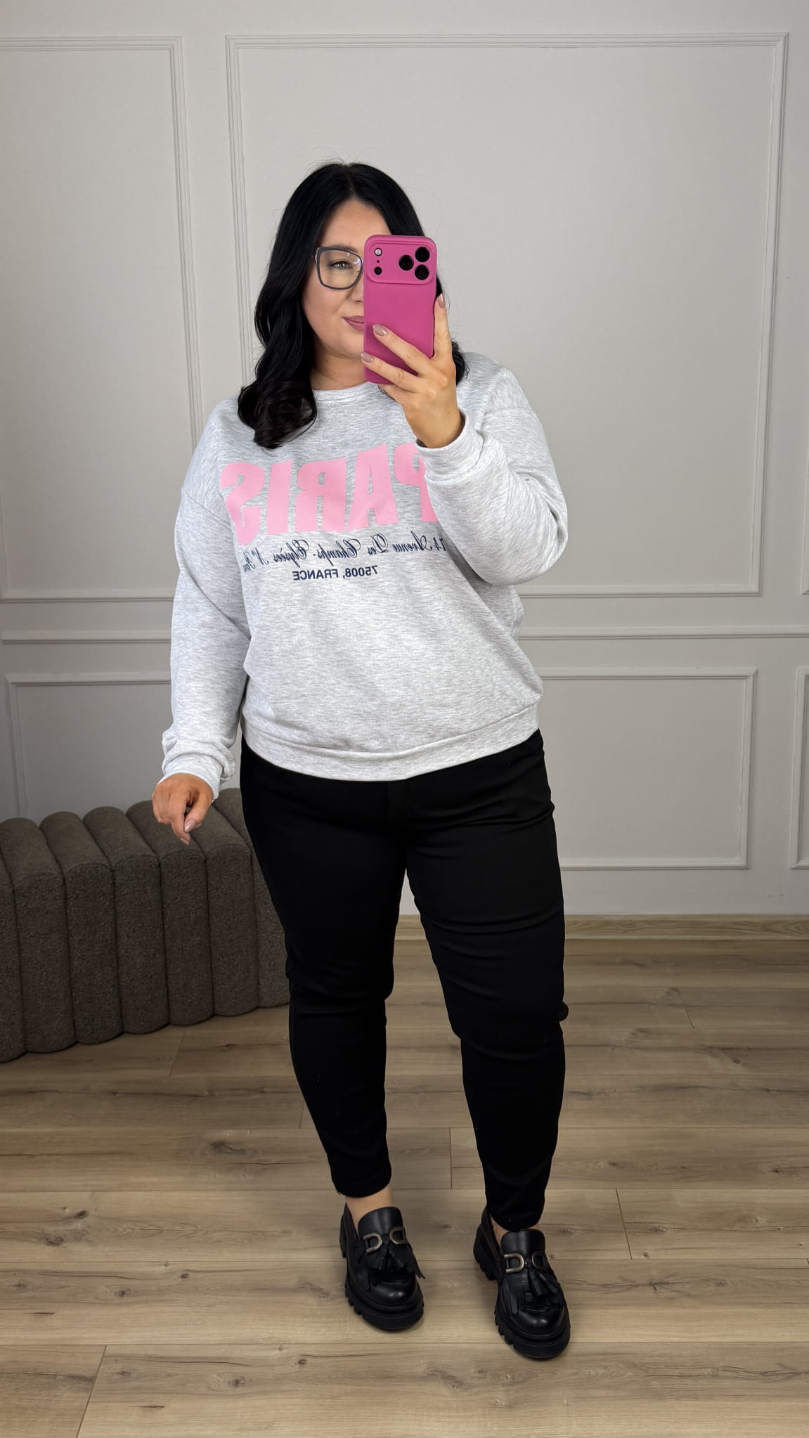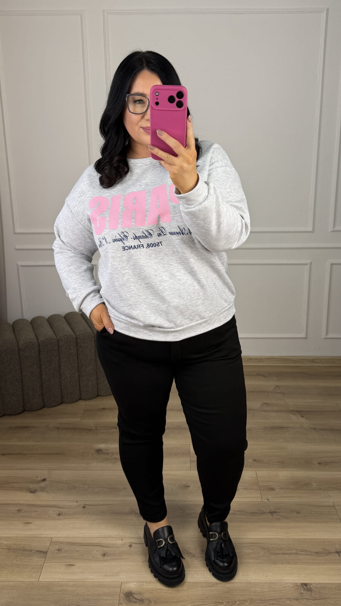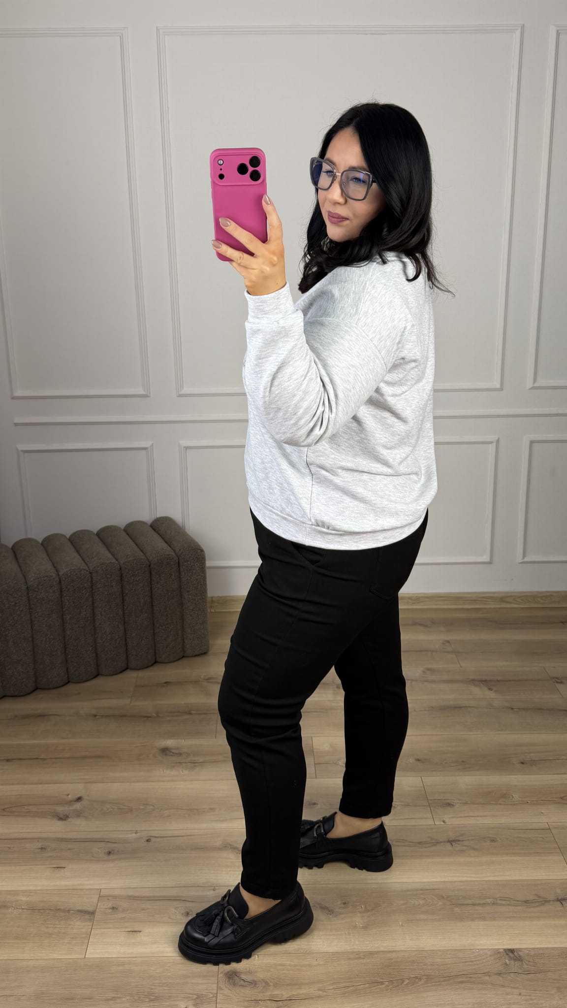 Klasyczna bluza z ozdobnym nadrukiem z przodu. Bluza o prostym klasycznym kroju, posiada okrągły dekolt, długi rękaw oraz ozdobny nadruk z przodu. Idealna w połączaniu z klasycznymi czarnymi spodniami jak i z jeansami.