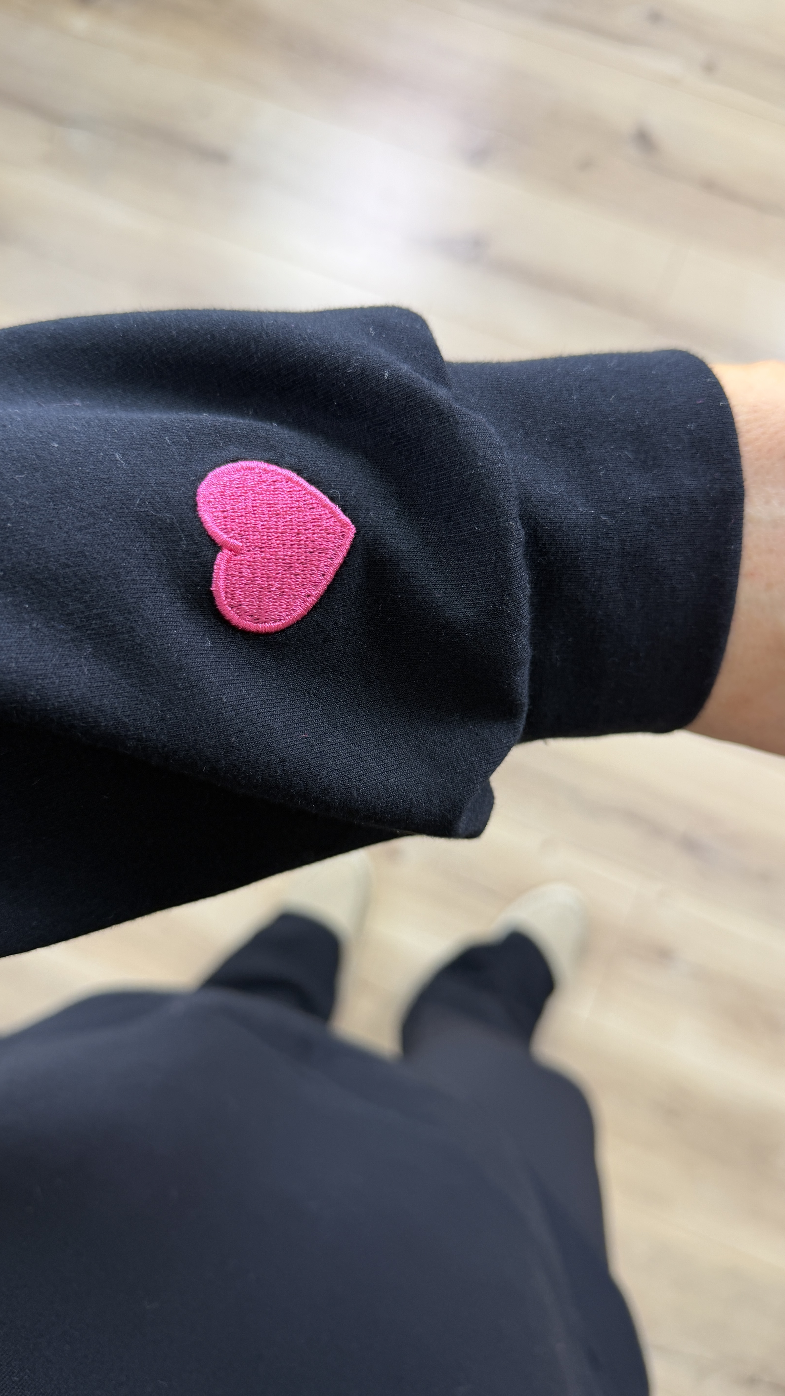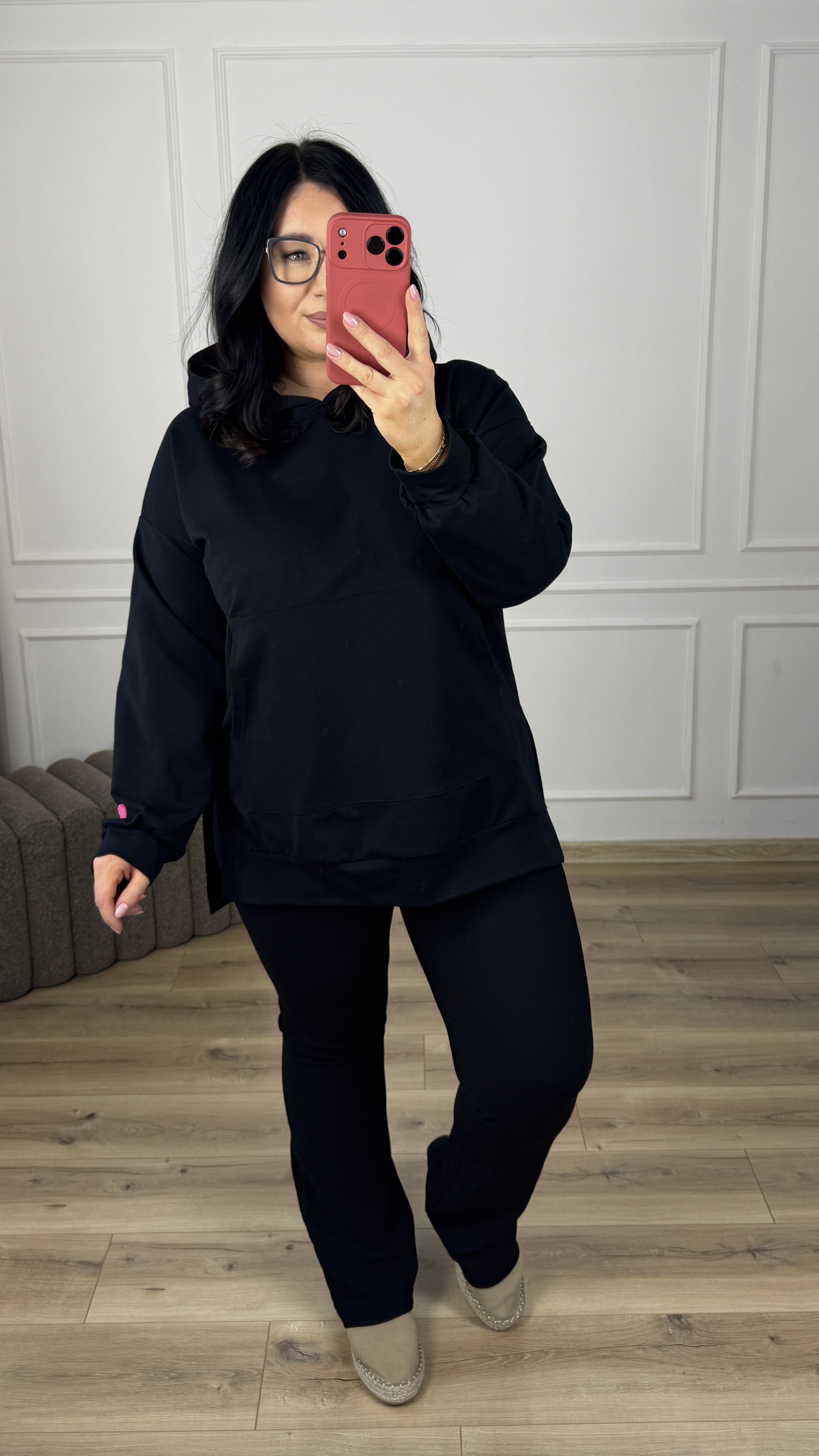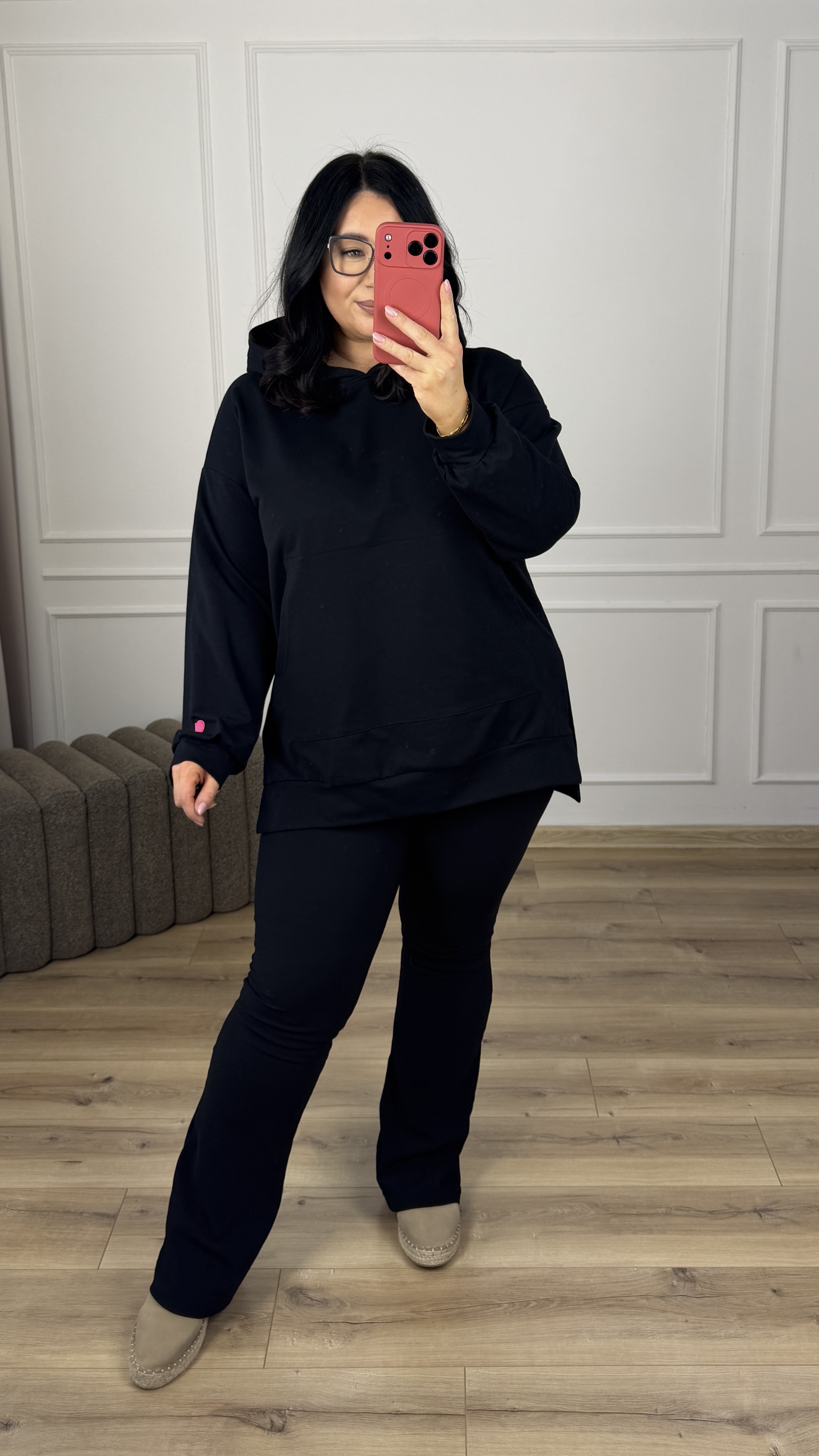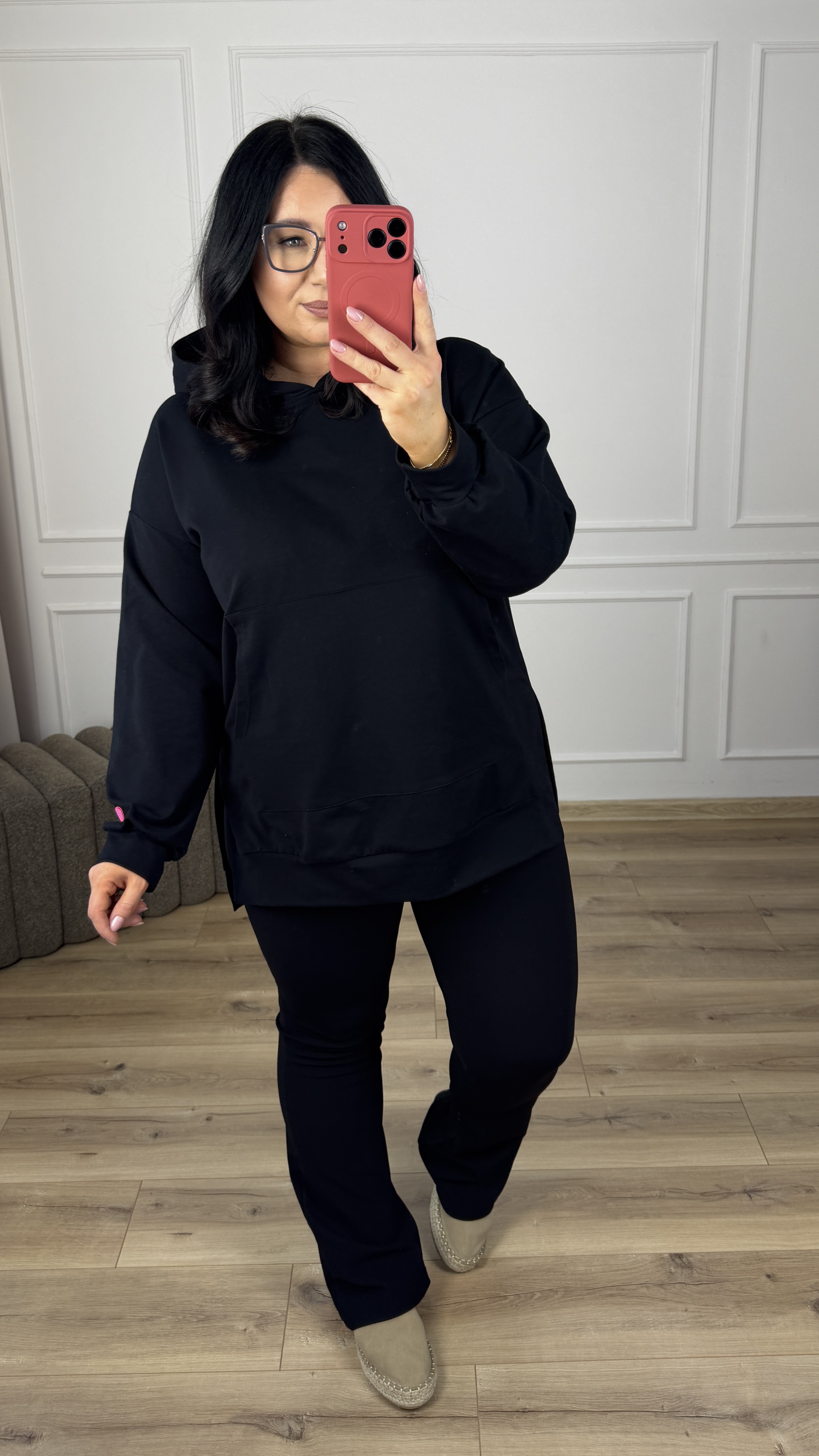 Bluza o kroju typu kangurka. Posiada kaptur oraz rozcięcia po bokach. Przód delikatnie krótszy oraz rozcięcia po bokach. Można stylizować na sportowo oraz na elegancko. Bluza posiada długi rękaw wykończony mankietem, lewy rękaw posiada haftowane serduszko które dodaje dziewczęcego uroku.