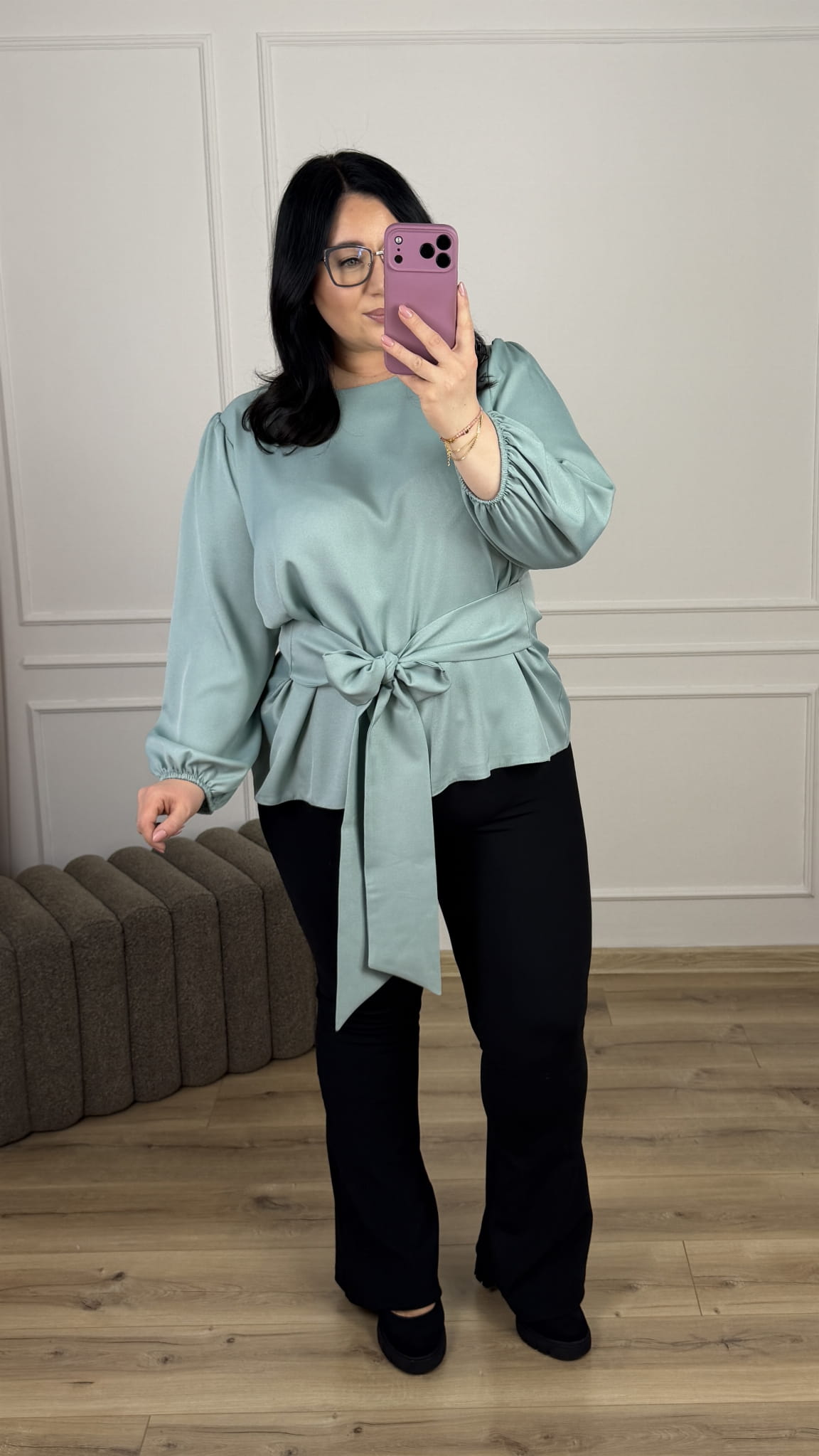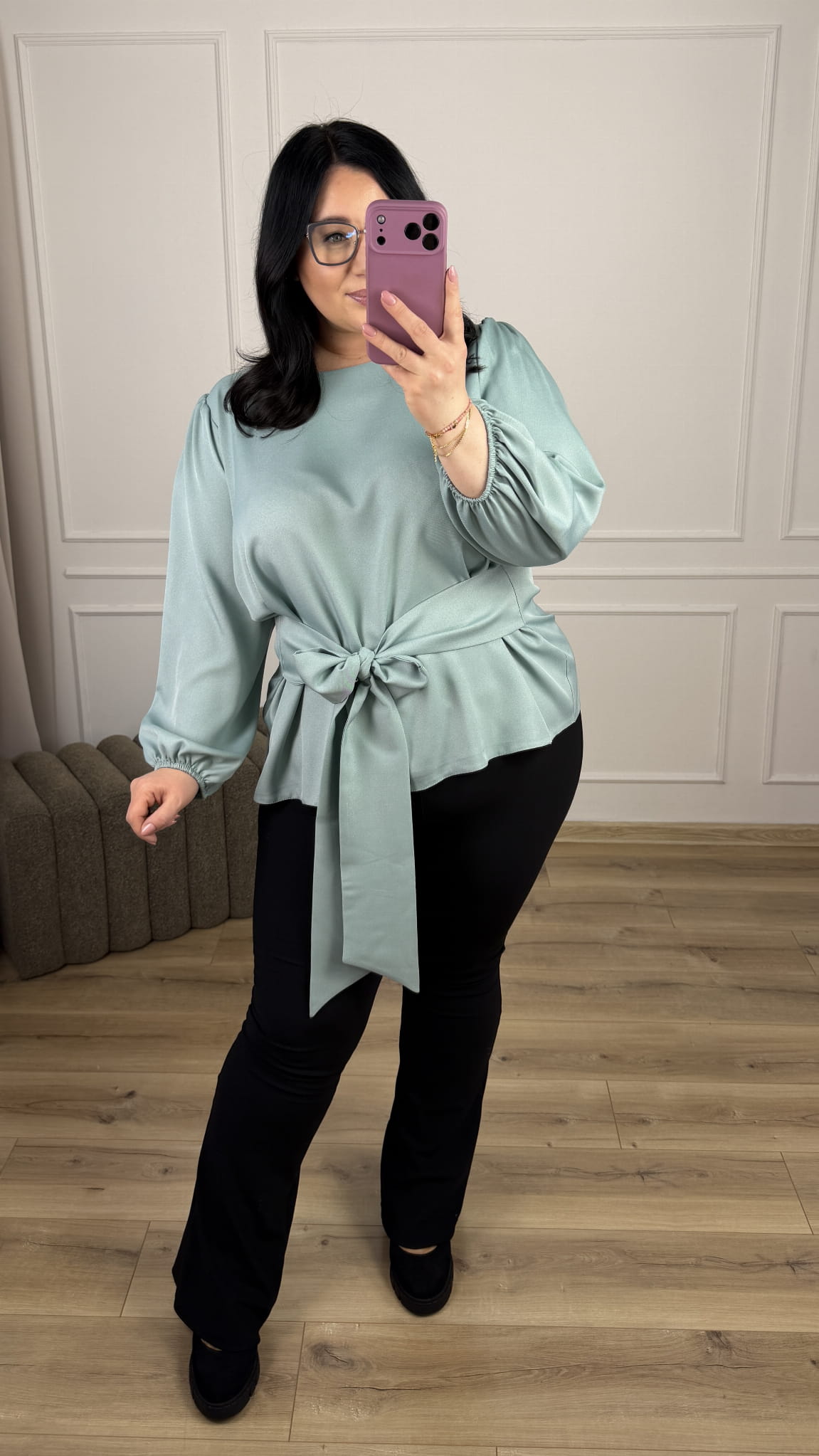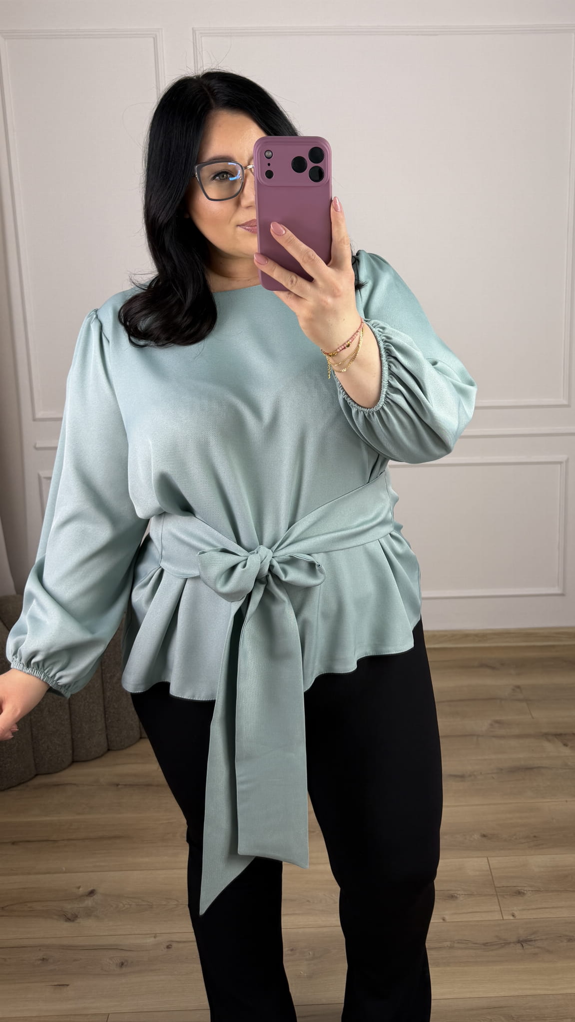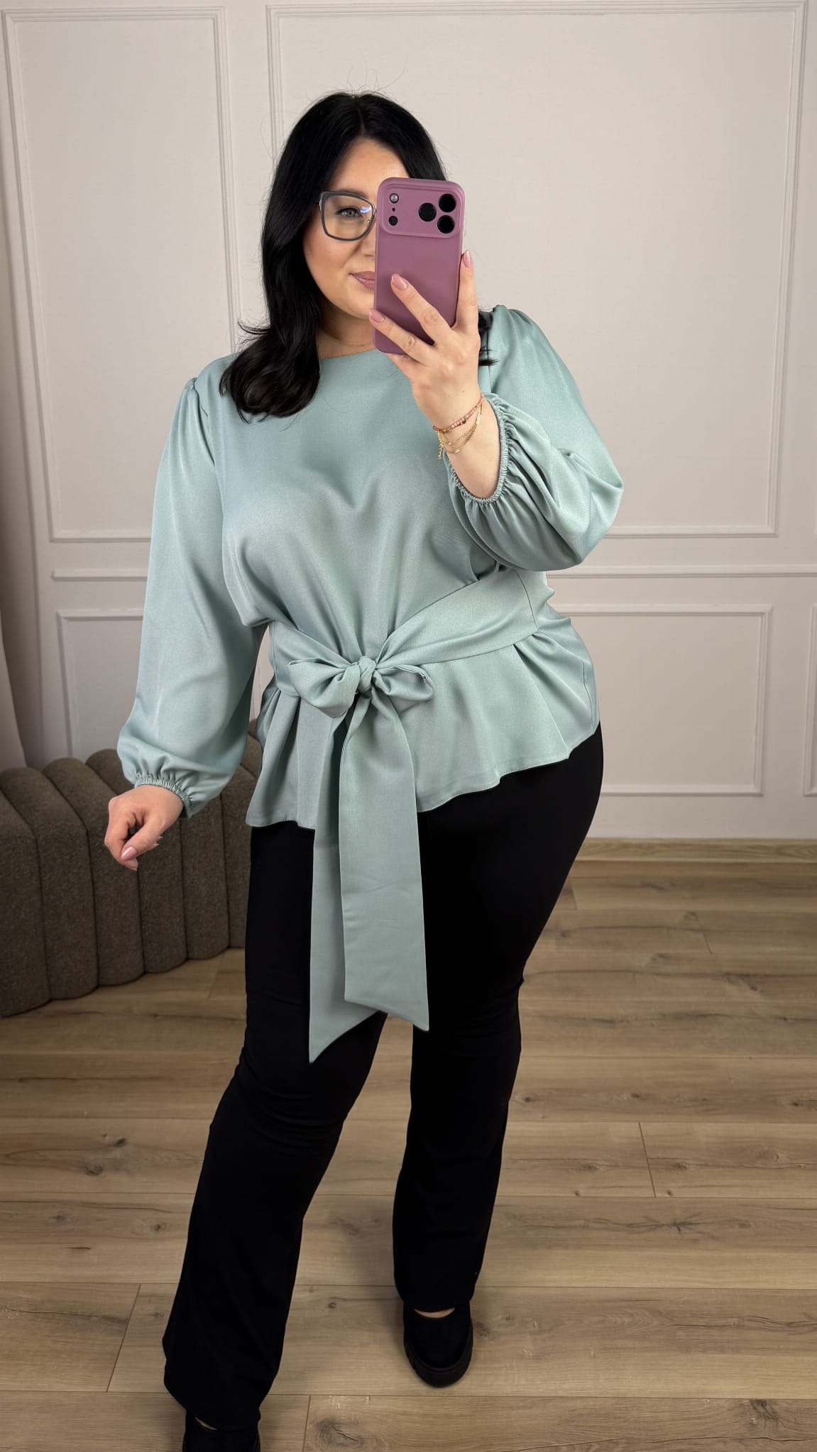 Efektowna bluzka z wiązaną kokardką - ty wybierasz gdzie ją zawiązać. Długi szeroki rękaw, okrągły dekolt. Prosty krój. Koszula dzięki wiązanej kokardzie świetnie wypełni każdą stylizację. Dostępna w 4 wiosennych kolorach.