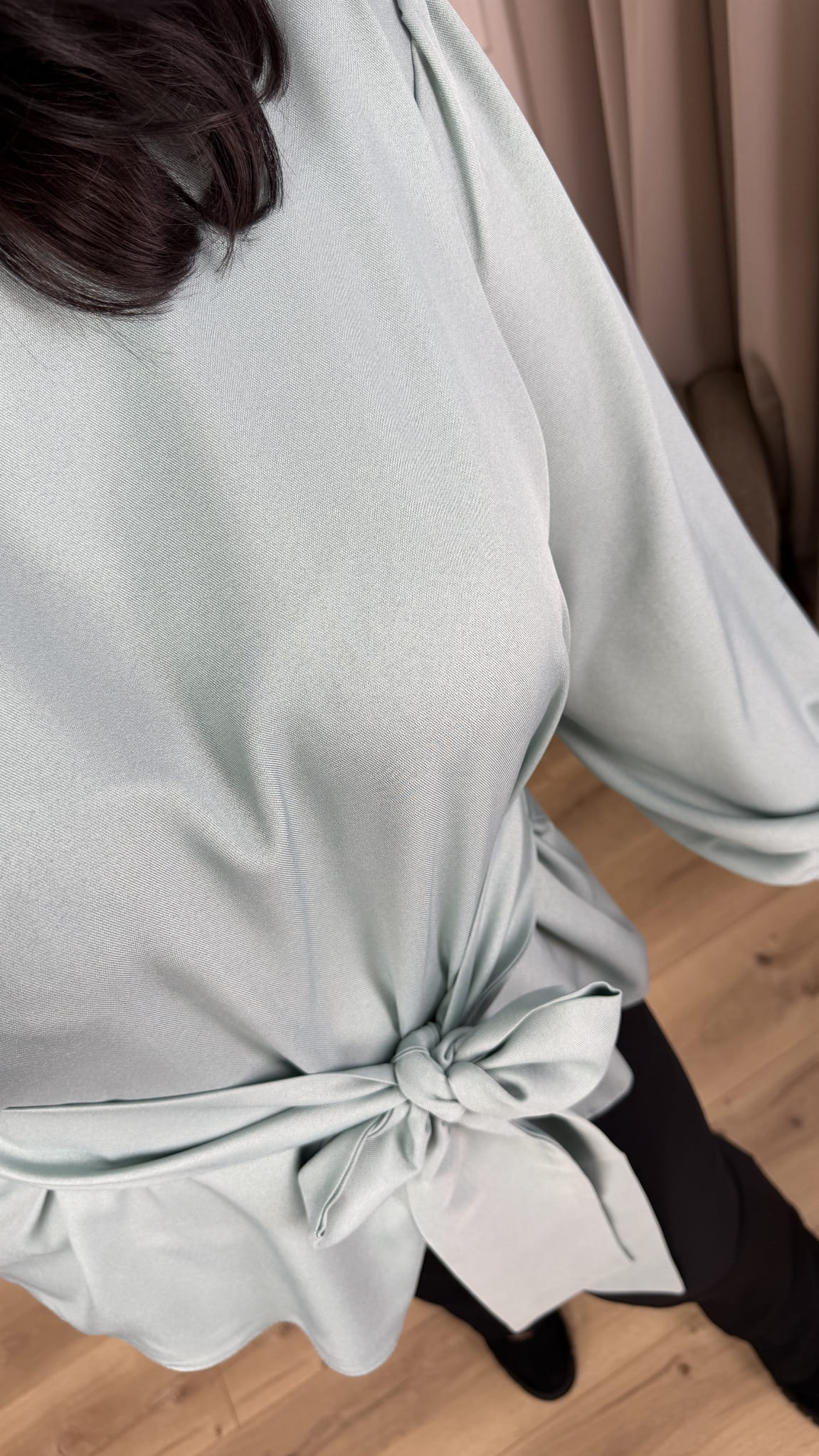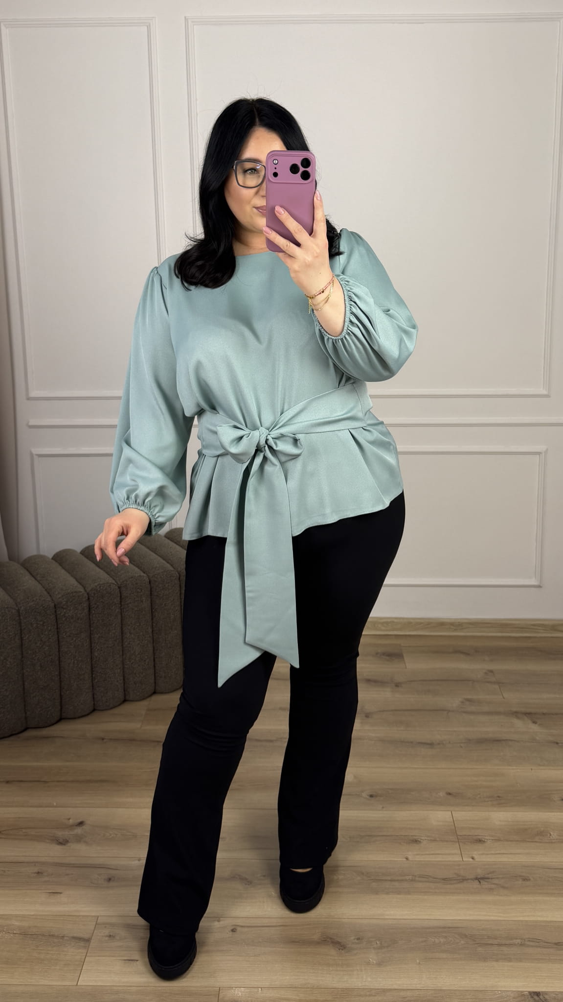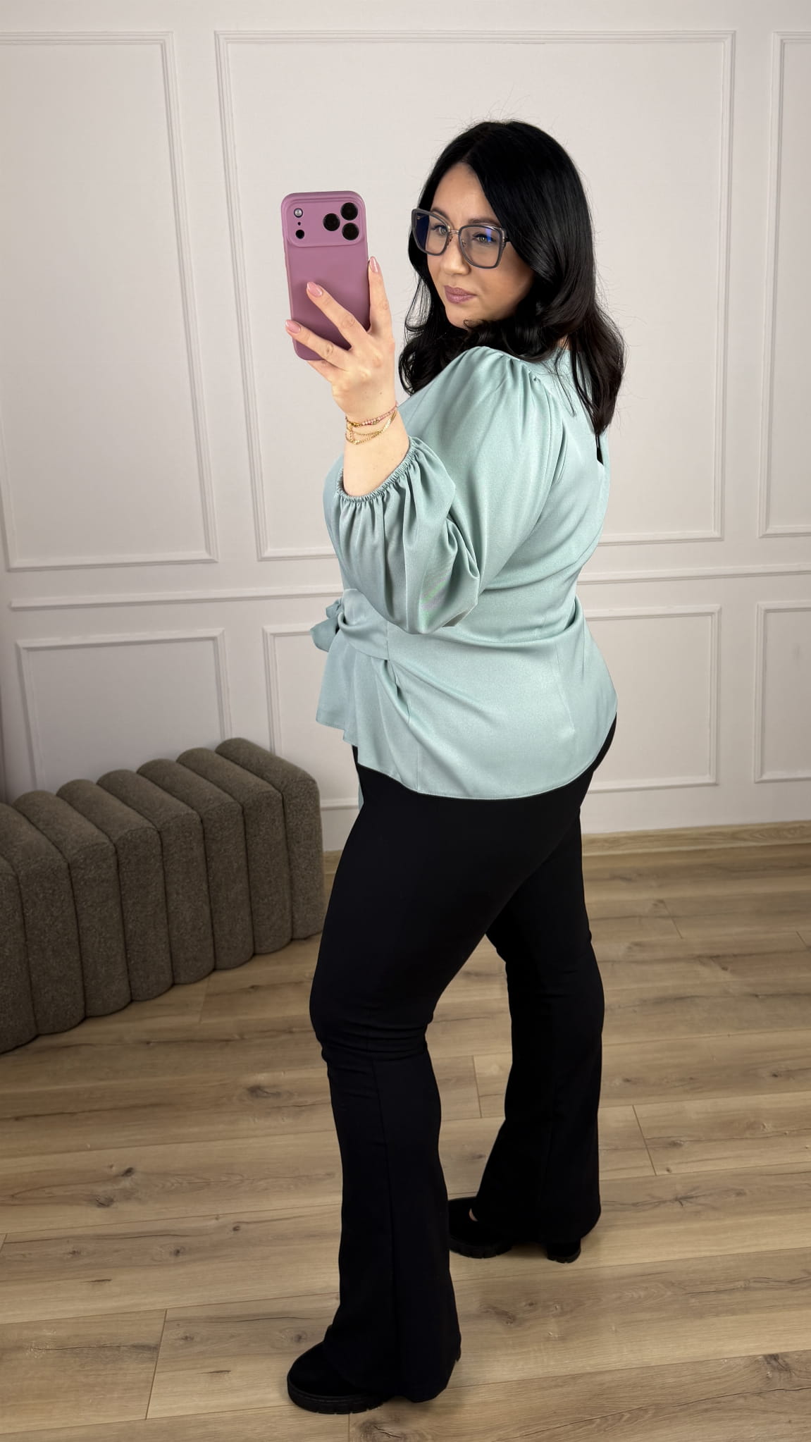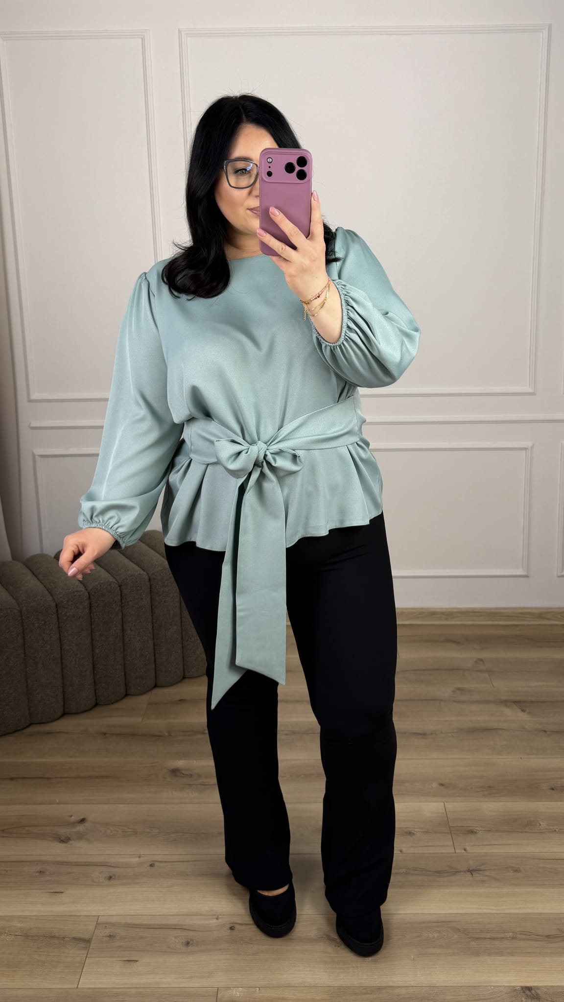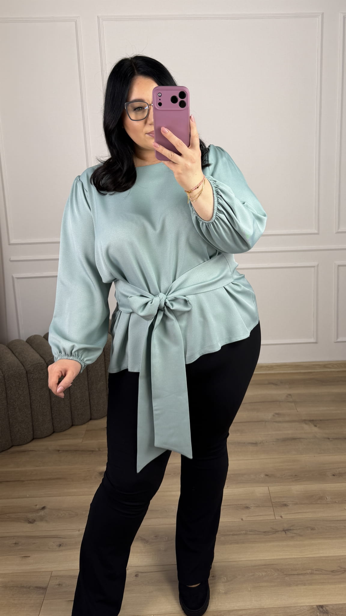 Efektowna bluzka z wiązaną kokardką - ty wybierasz gdzie ją zawiązać. Długi szeroki rękaw, okrągły dekolt. Prosty krój. Koszula dzięki wiązanej kokardzie świetnie wypełni każdą stylizację. Dostępna w 4 wiosennych kolorach.