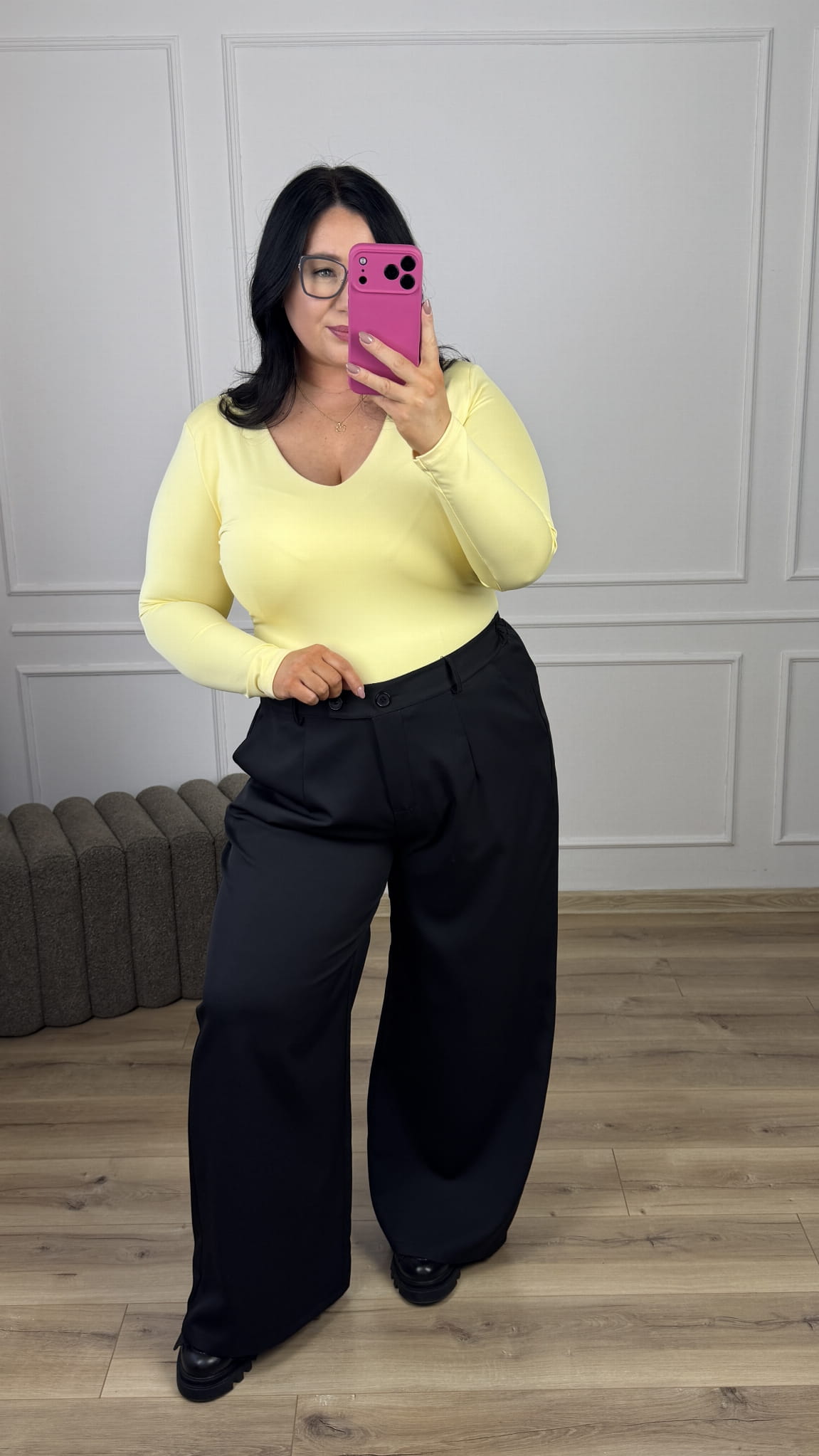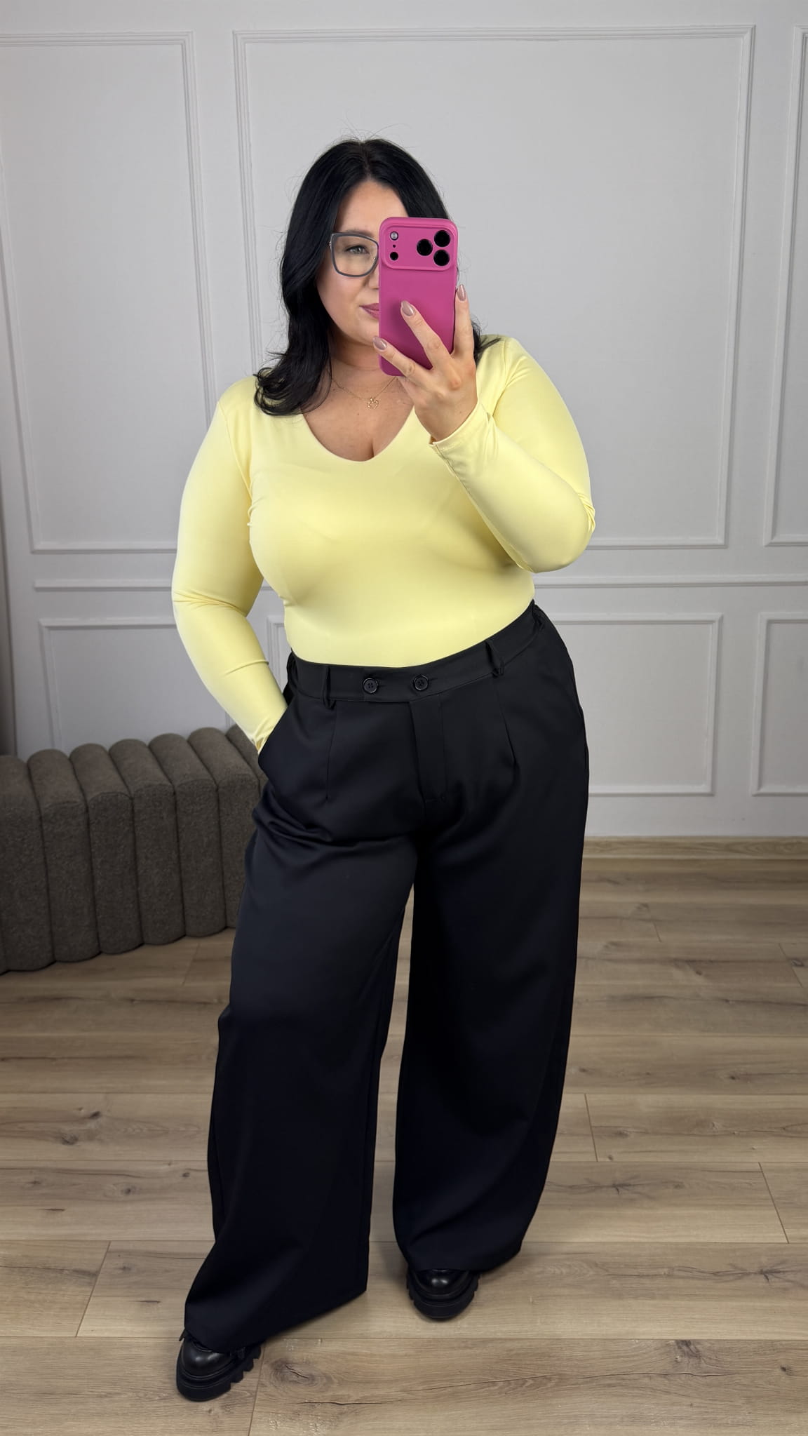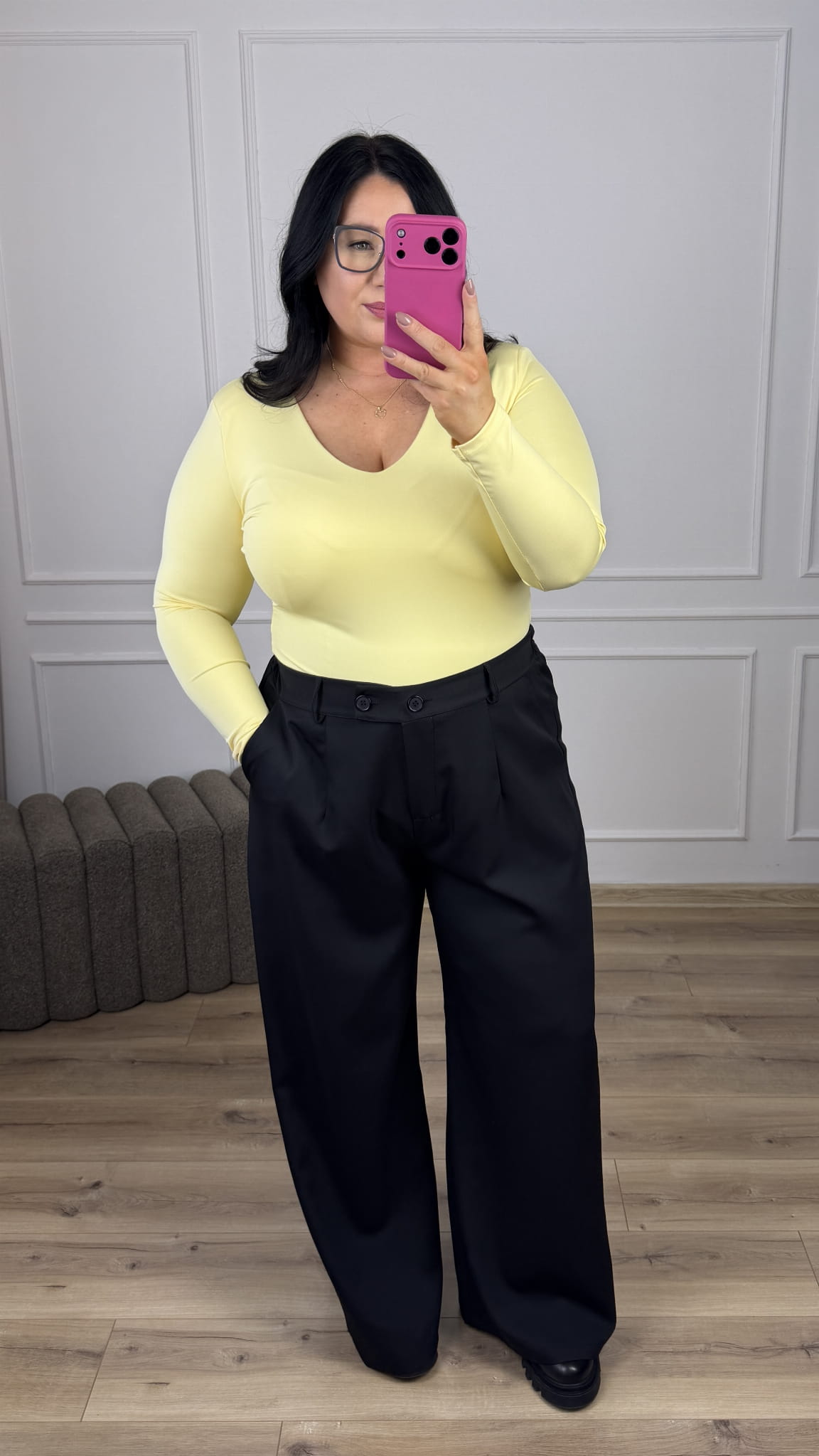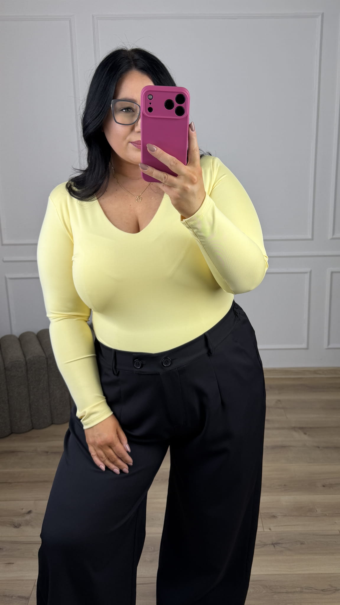 Body typu druga skóra - idealnie dopasowuje się do ciała. Body posiada dekolt w serek oraz poduszki na ramionach. Body zapinane na haftki. Body posiada długi rękaw. Body idealnie sprawdzi się osobno np. do spodni z wysokim stanem czy spódnicy jak i również jako basic pod marynarkę.