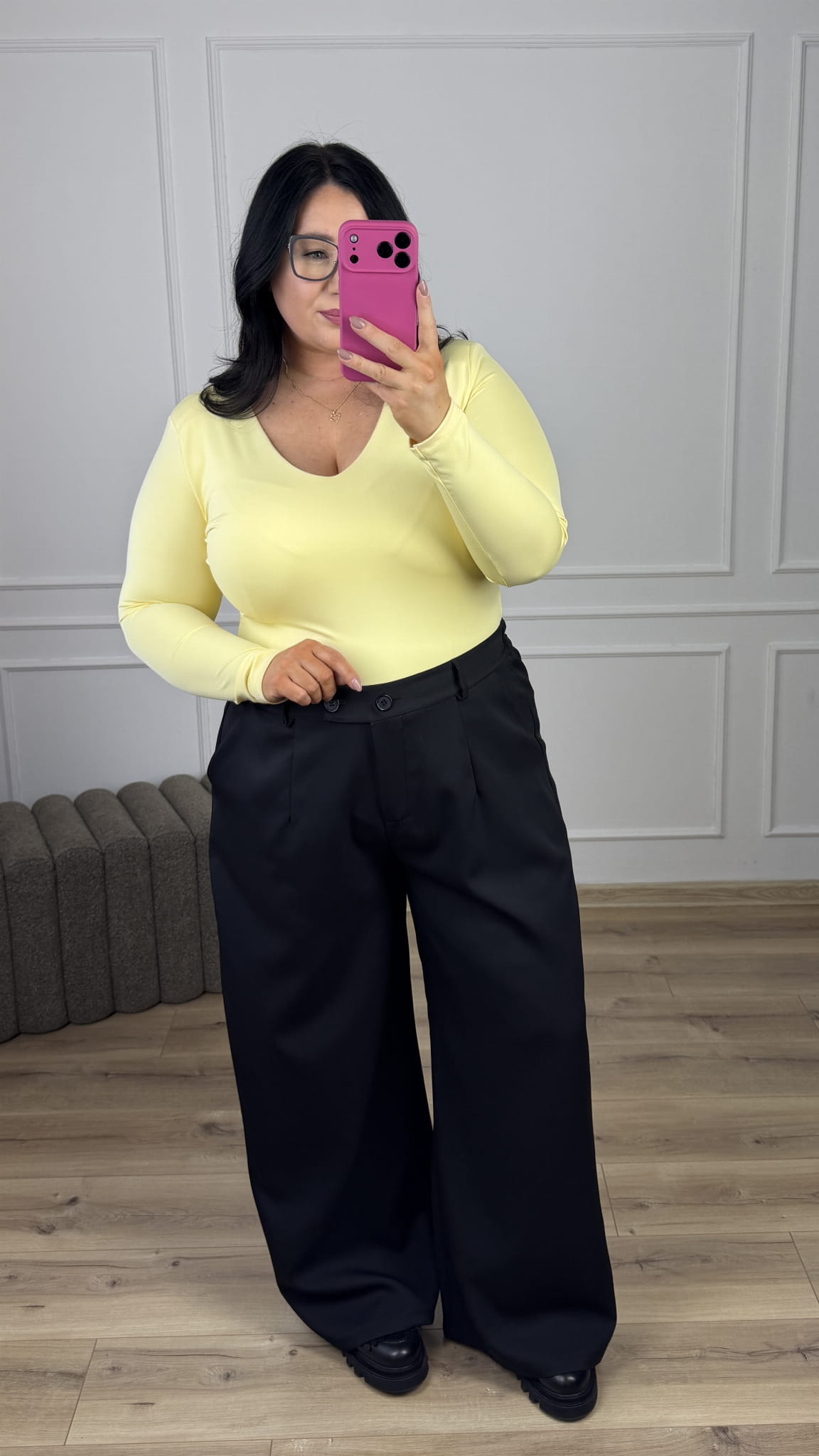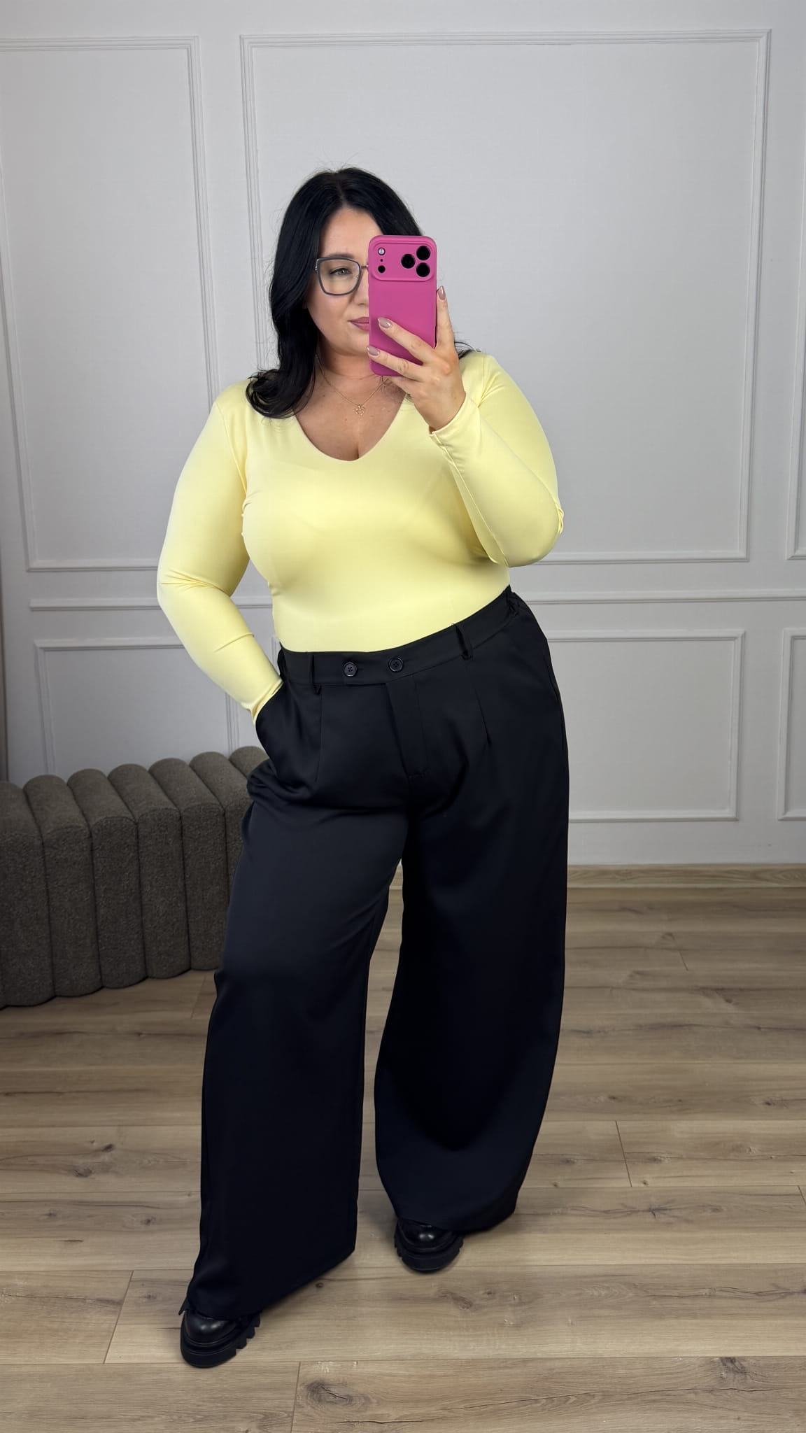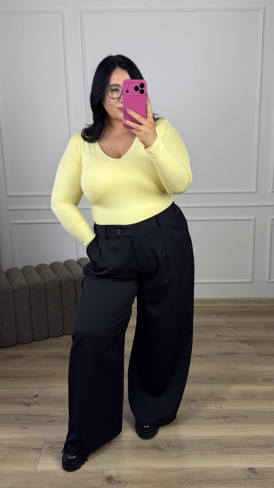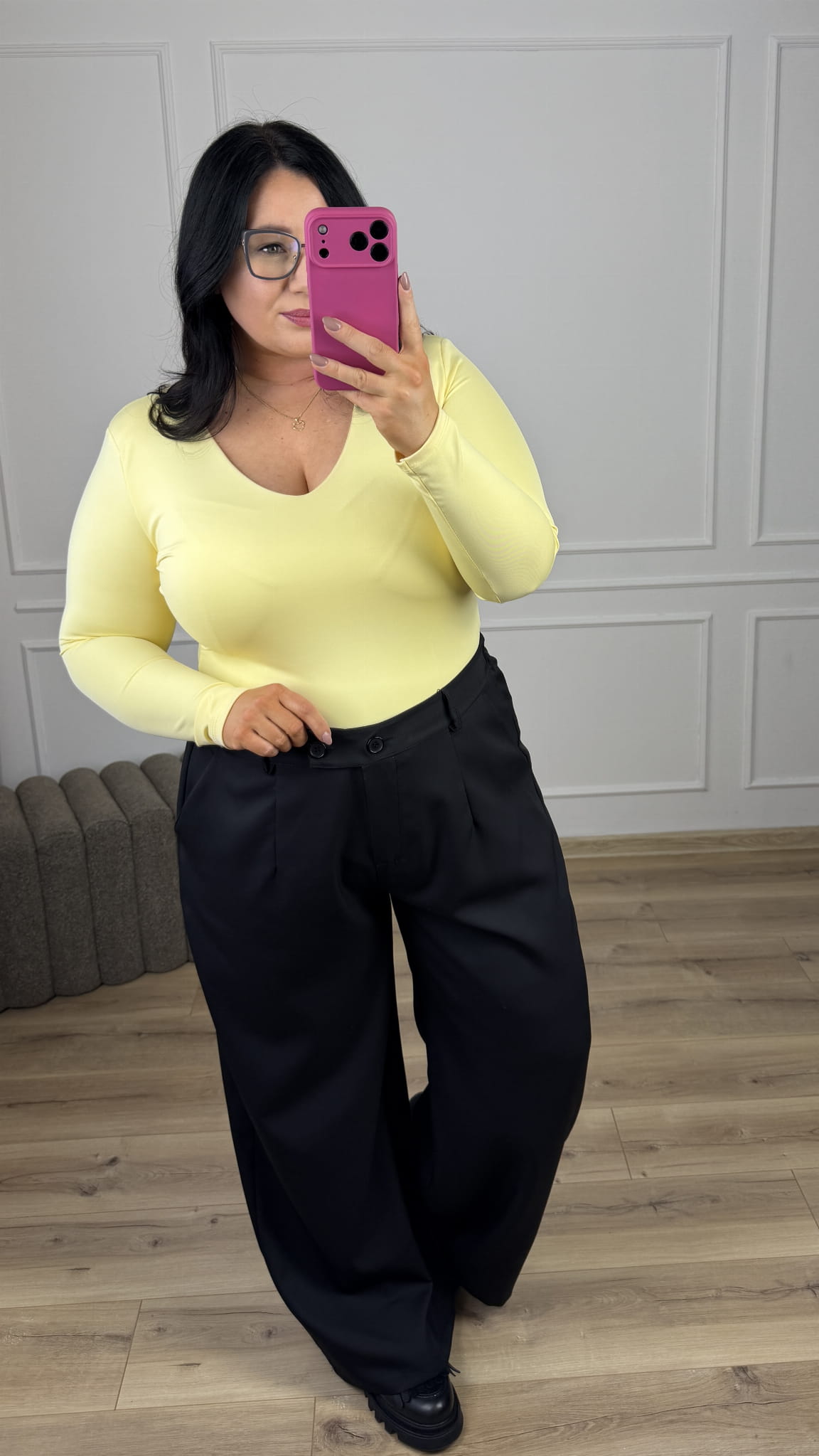 Body typu druga skóra - idealnie dopasowuje się do ciała. Body posiada dekolt w serek oraz poduszki na ramionach. Body zapinane na haftki. Body posiada długi rękaw. Body idealnie sprawdzi się osobno np. do spodni z wysokim stanem czy spódnicy jak i również jako basic pod marynarkę.