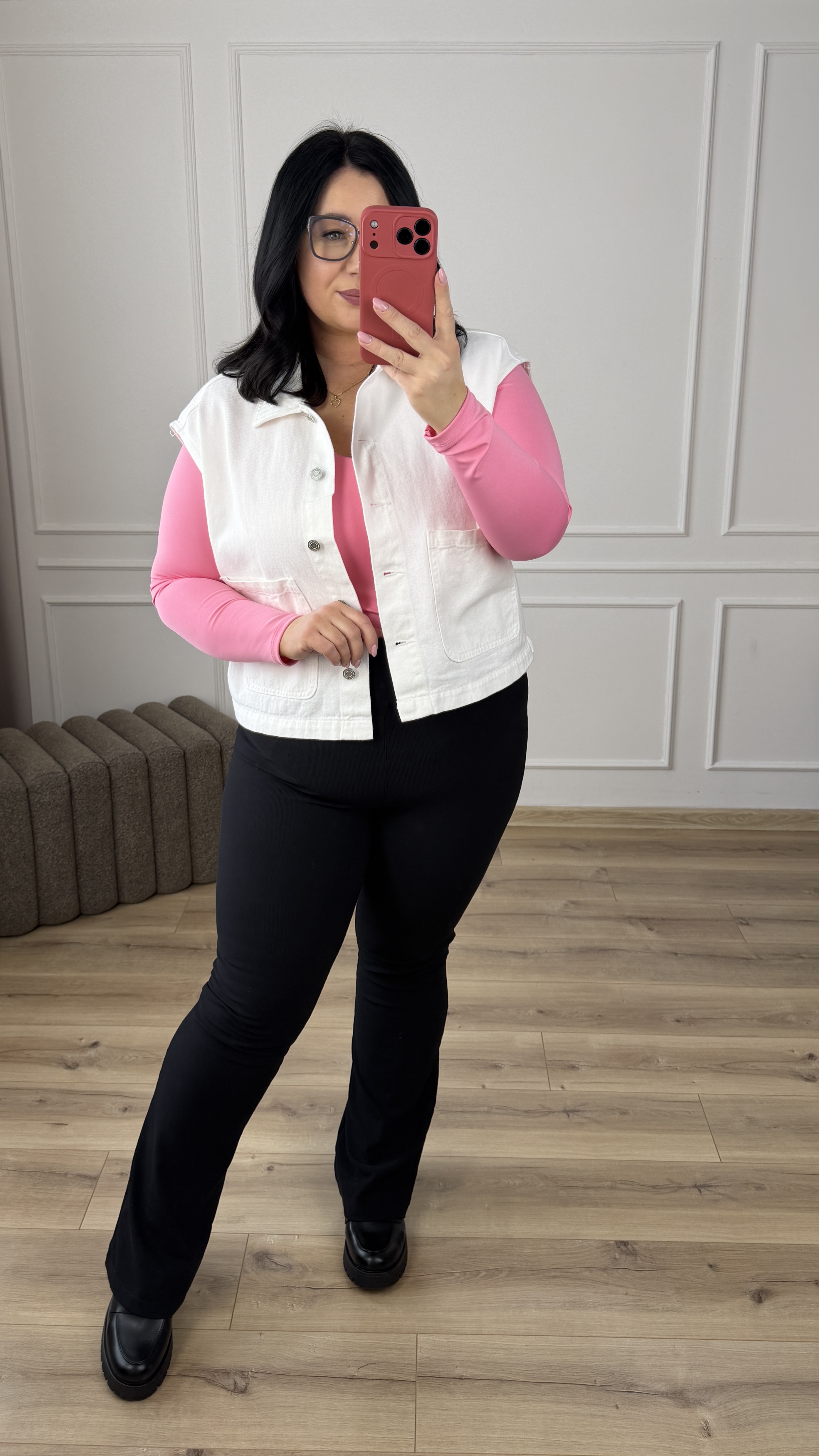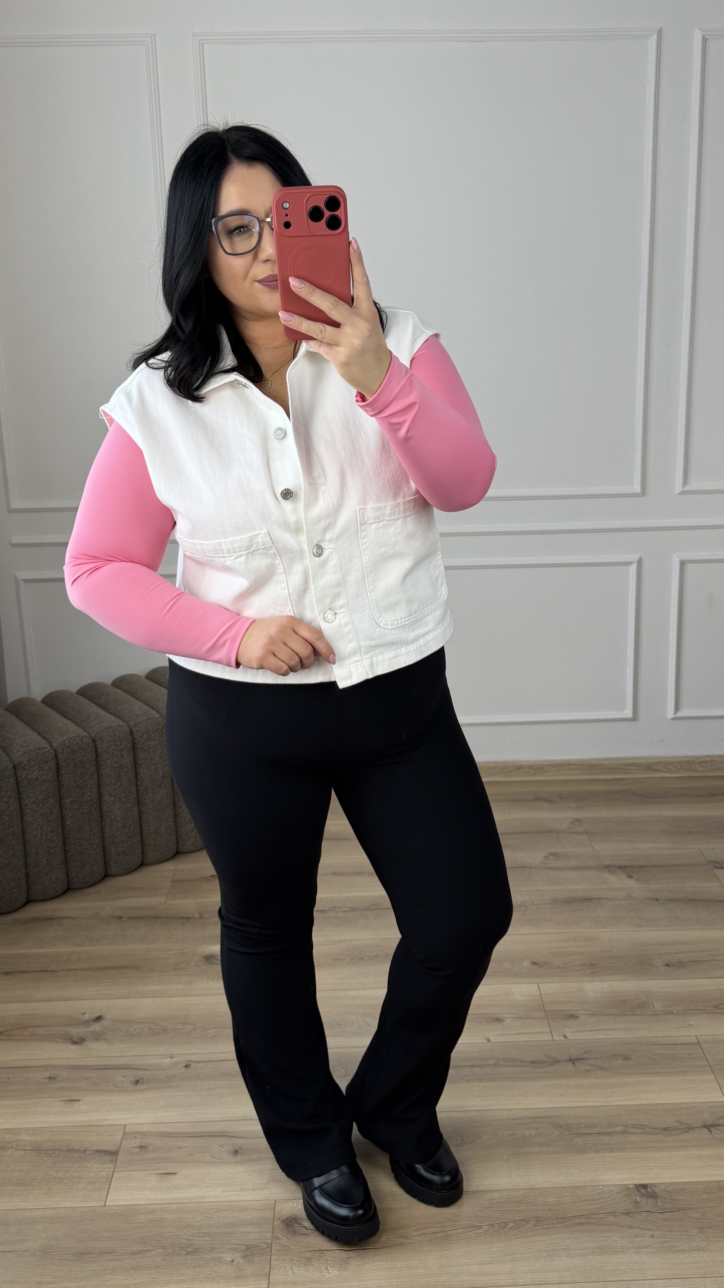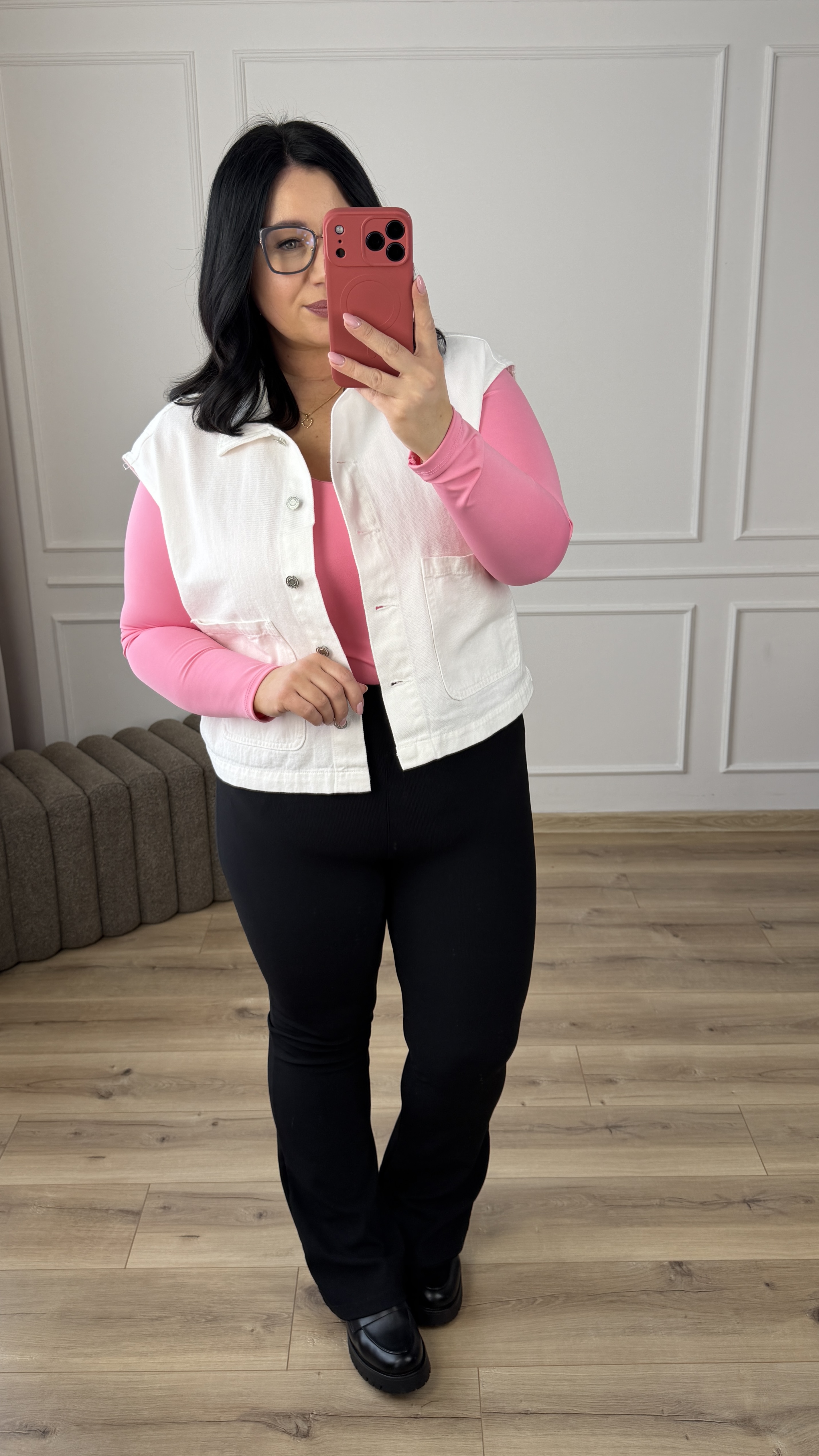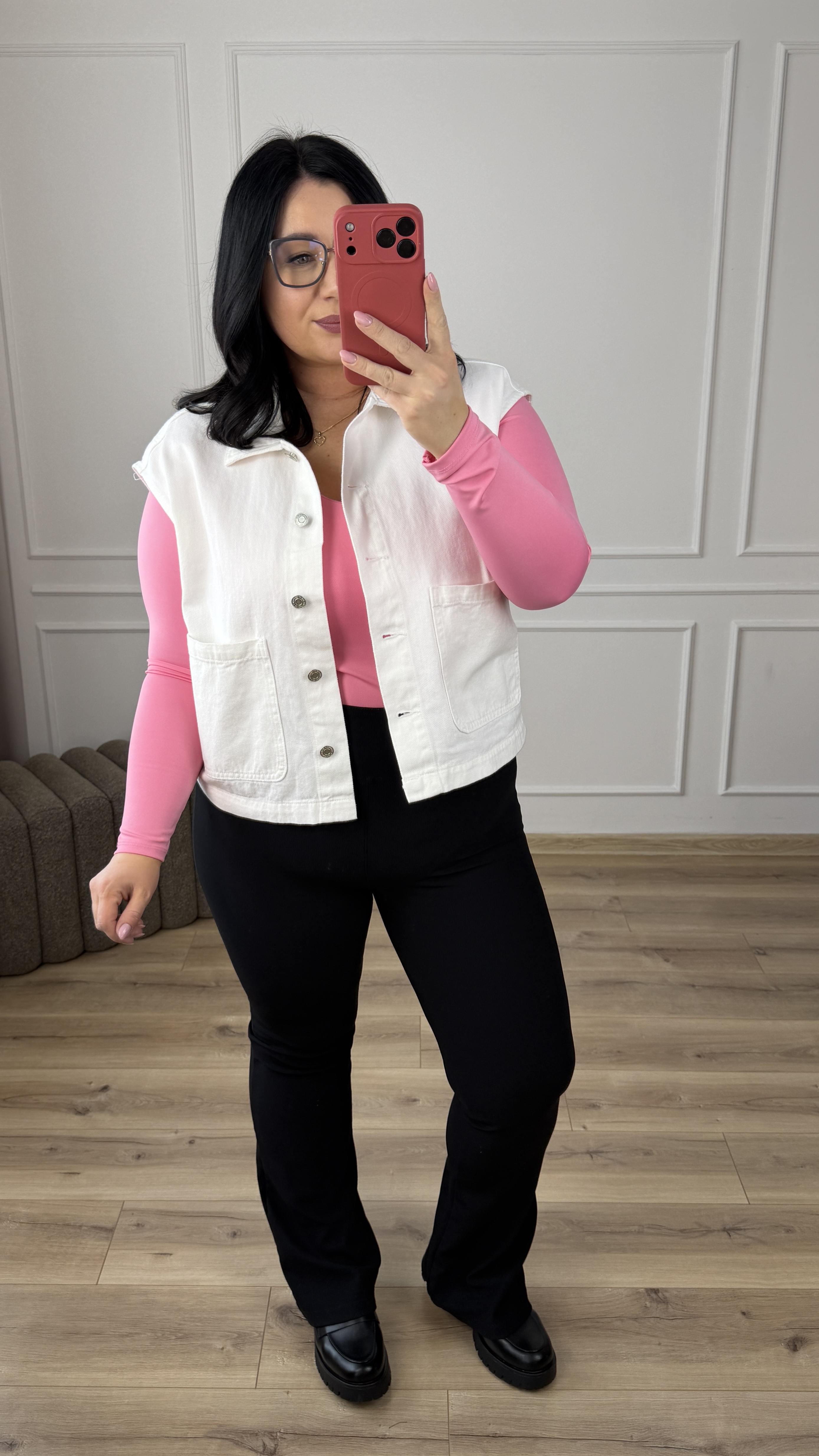 Stylowa kamizelka jeansowa w bieli. Kamizelka o prostym, klasycznym kroju zapinana na guziki. Kamizelka posiada duże kieszenie z przodu. Kamizelka świetnie sprawdzi się jako dodatek zarówno do codziennych, jak i casualowych stylizacji, zapewniając wygodę oraz stylowy wygląd. Kamizelka idealnie sprawdzi się w połączeniu z body, koszulą czy t-shirtem jako okrycie wierzchnie.