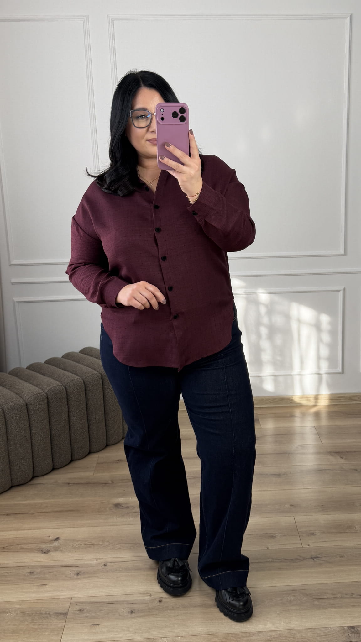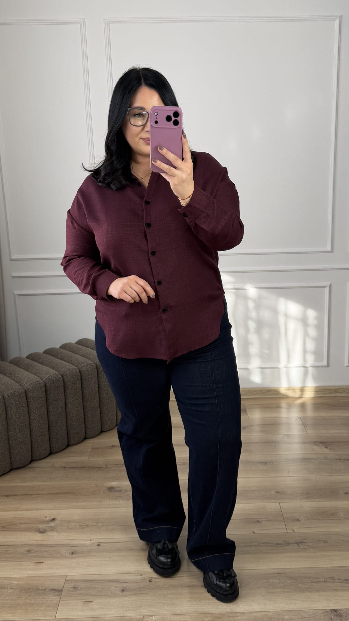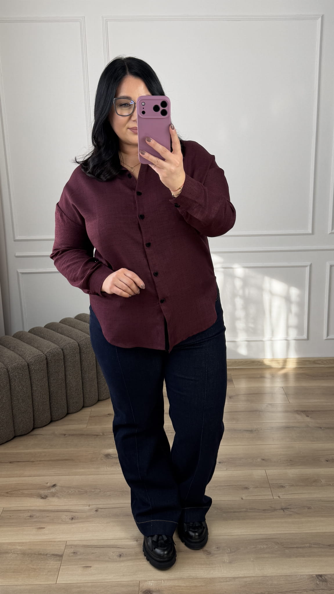 Taliowana koszula w groszki o klasycznym kroju z ozdobnymi guzikami w kształcie serca. Lekko dłuższy tył, posiada kołnierzyk, zapinana na rząd guzików. Koszula posiada welurowe guziki w kształcie serca. Długi rękaw zakończony mankietem i zapinanym na guzik. Model świetnie sprawdzi się na co dzień czy do pracy.