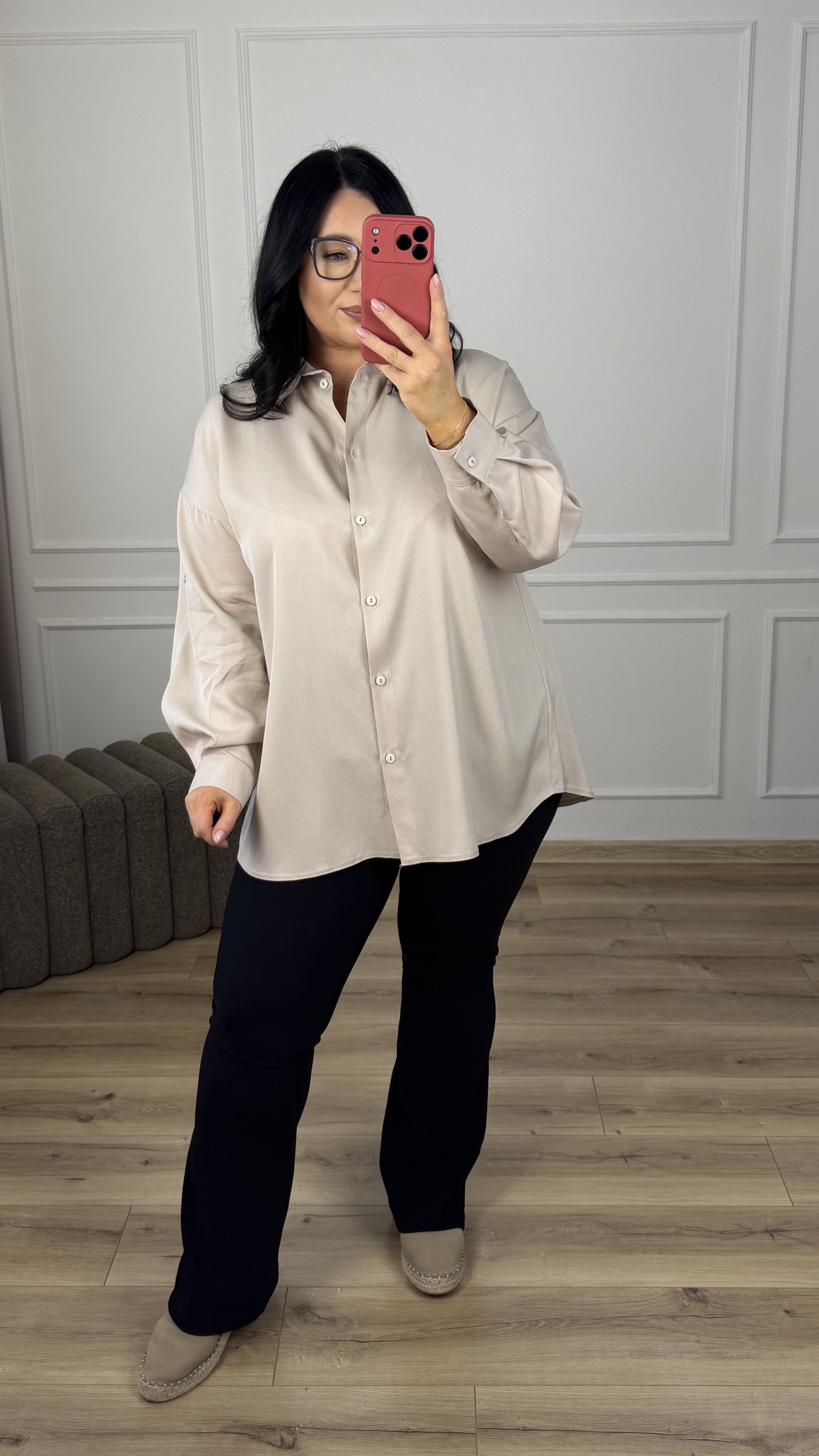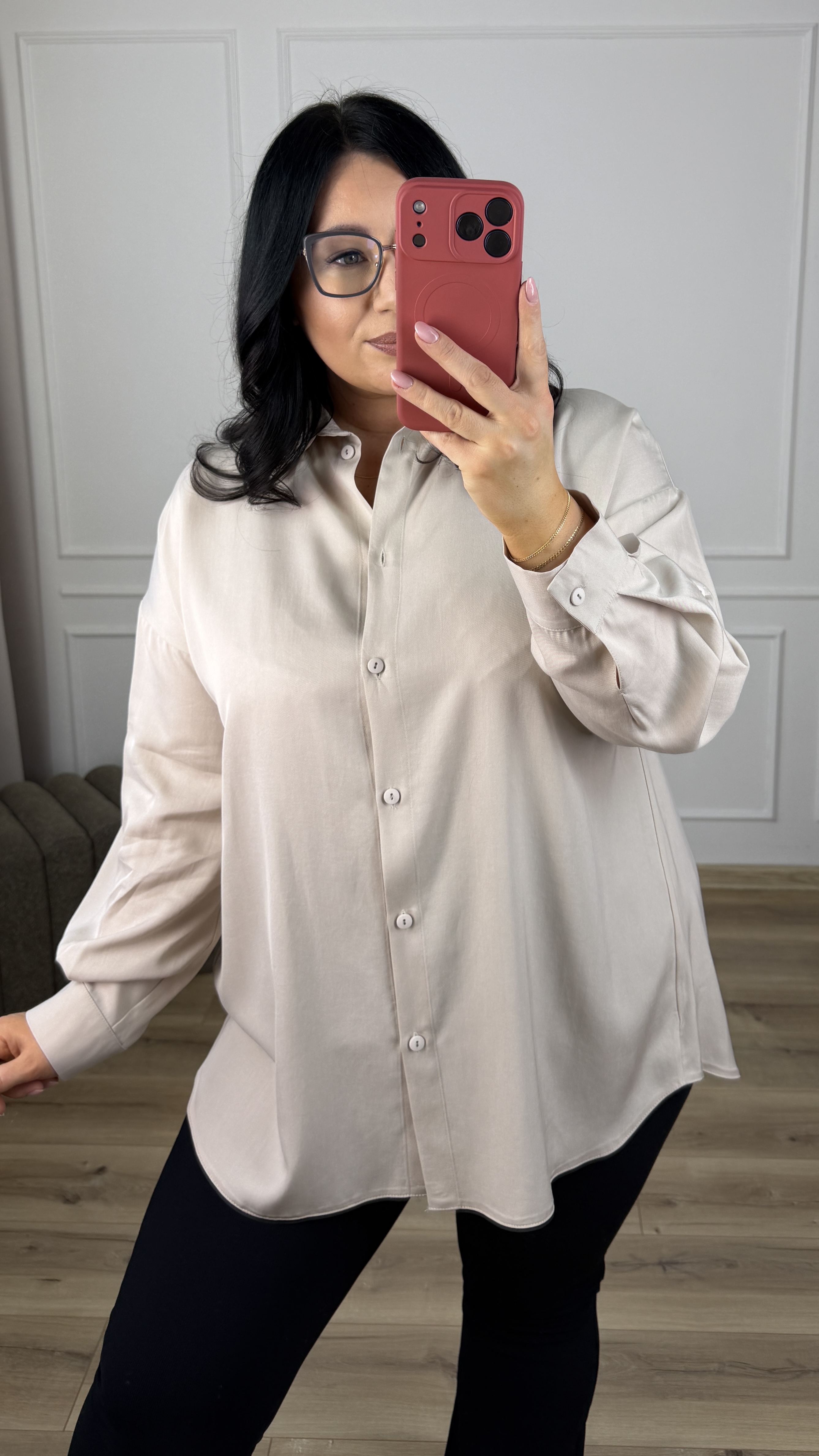 Świetna koszula polskiego producenta z naturalnego materiału - tencel, to stylowa i bardzo kobieca propozycja, która świetnie sprawdzi się w wielu stylizacjach. Koszula o klasycznym kroju lekko rozszerzana ku dołowi z efektownym tyłem. Koszula z tyłu posiada dłuższy, plisowany materiał. Koszula posiada kołnierz, zapinana na rząd guzików, posiada długi rękaw wykończony mankietem zapinanym na guzik.
