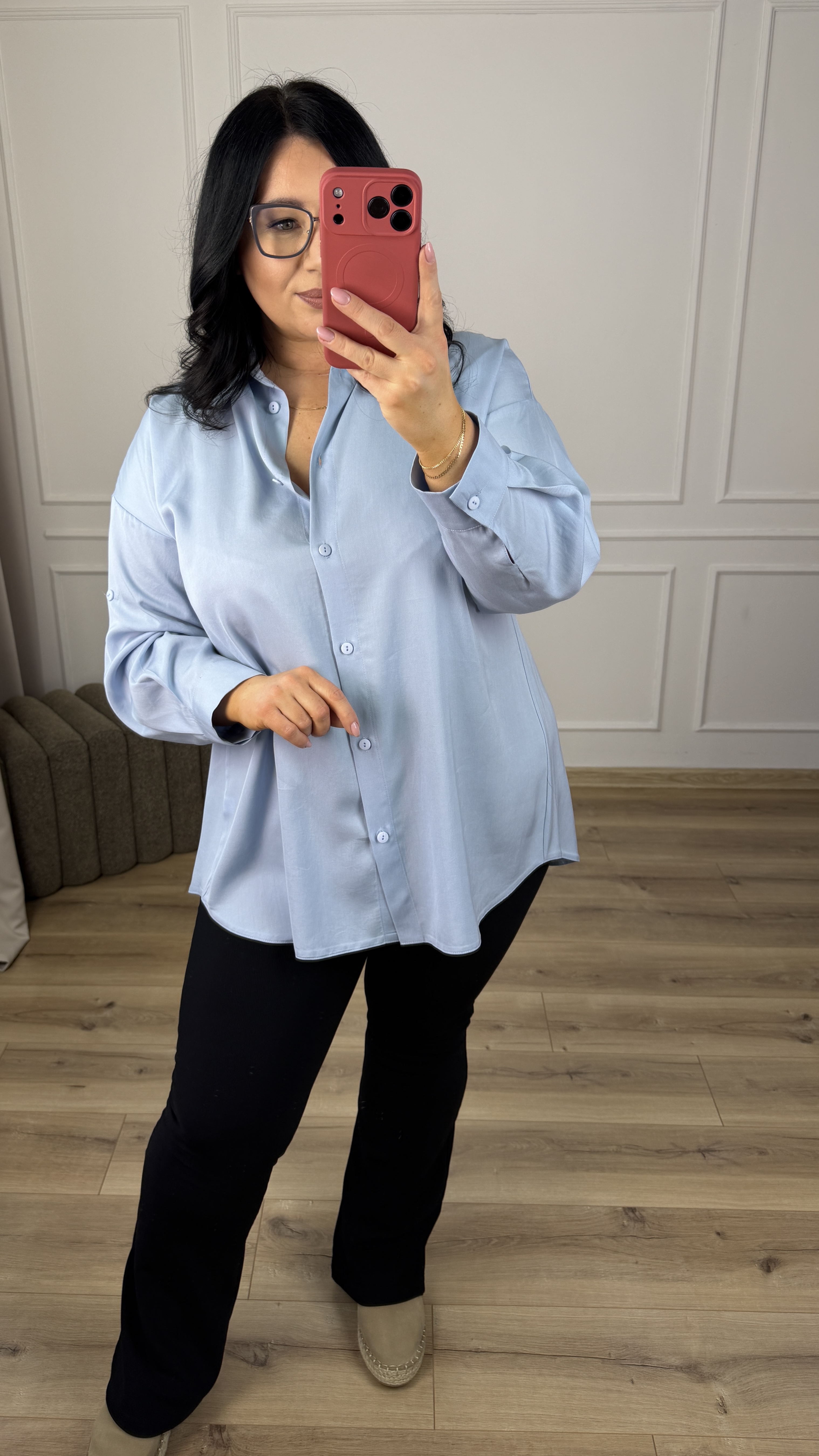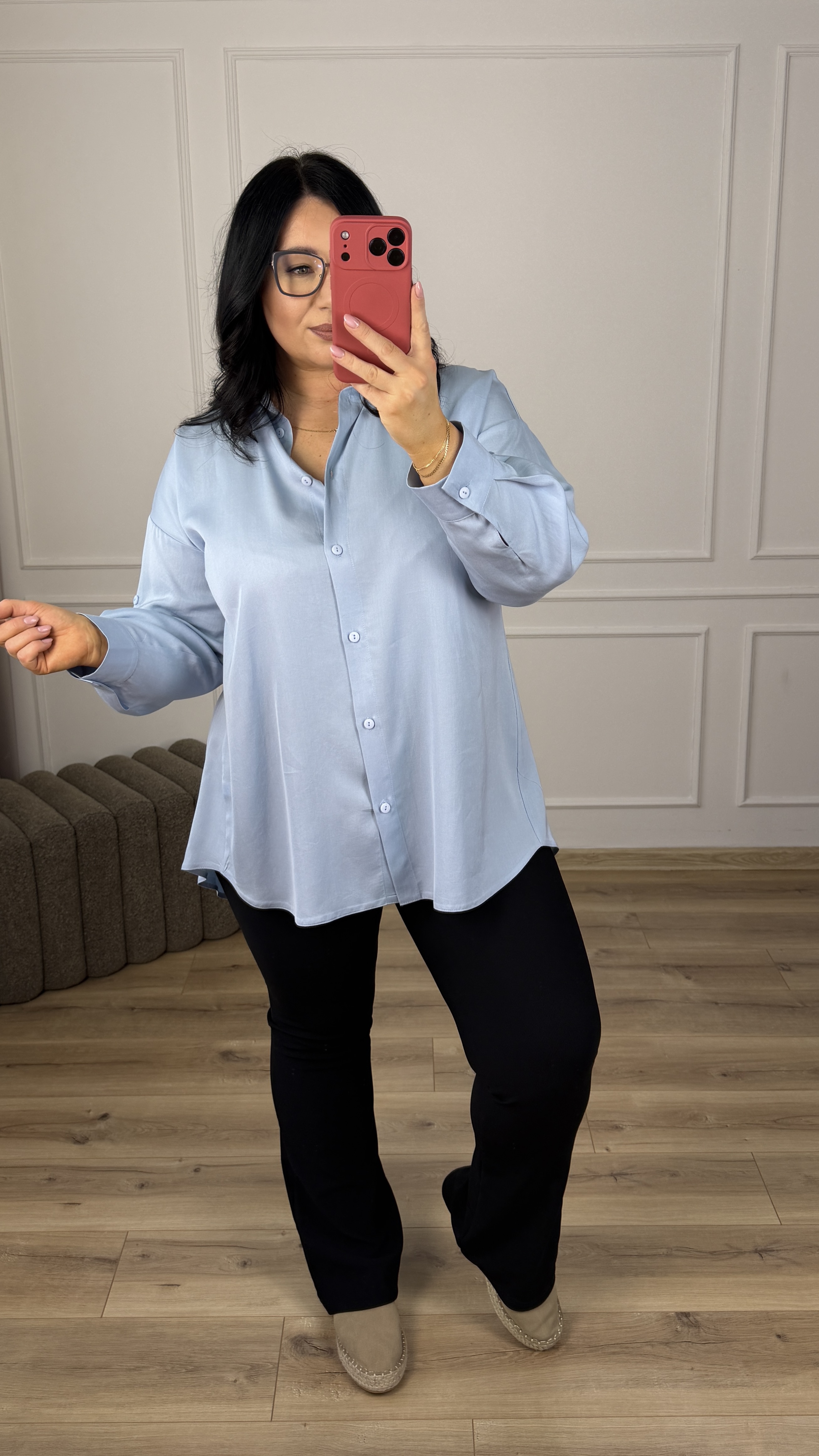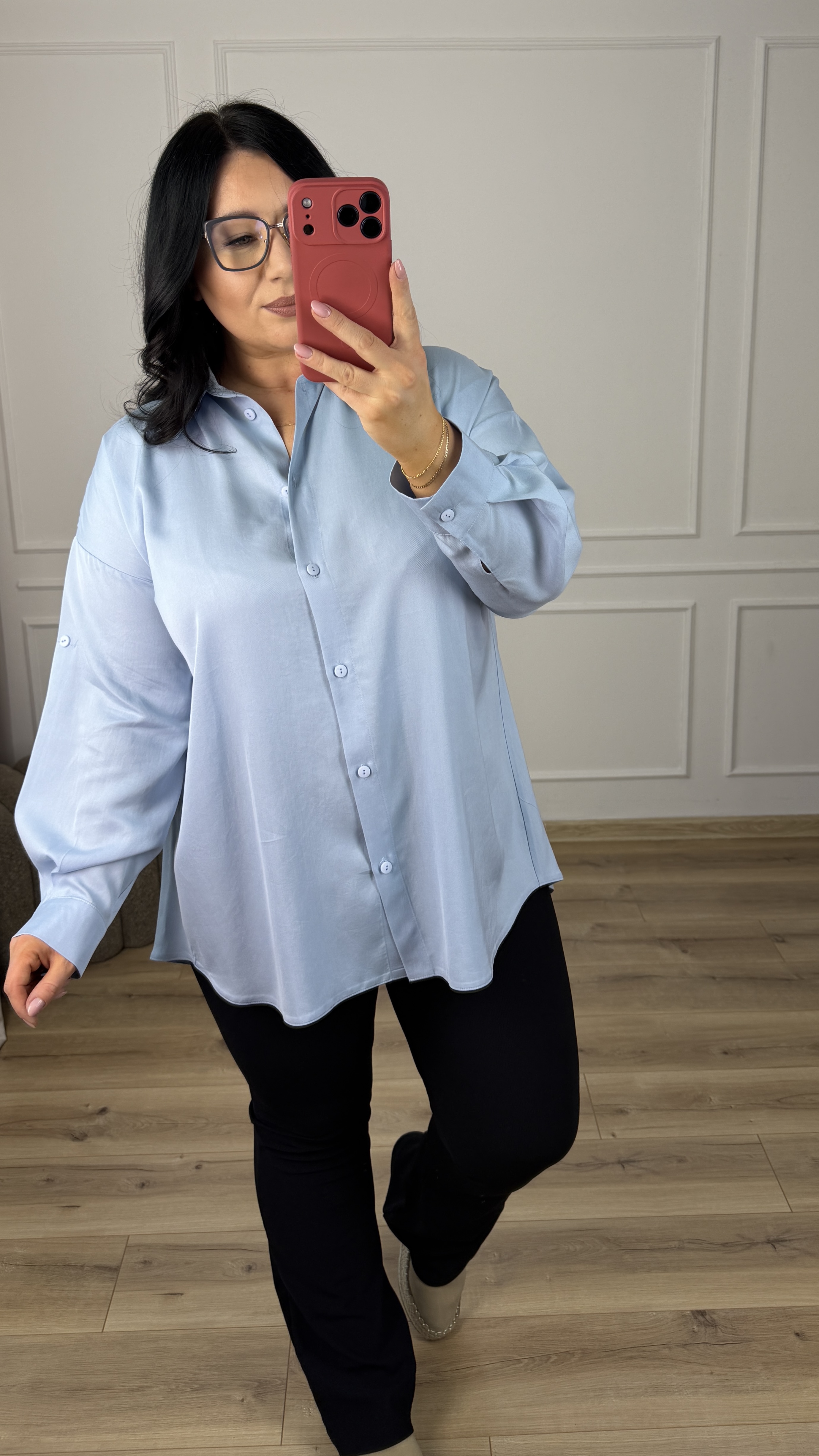 Świetna koszula polskiego producenta z naturalnego materiału - tencel, to stylowa i bardzo kobieca propozycja, która świetnie sprawdzi się w wielu stylizacjach. Koszula o klasycznym kroju lekko rozszerzana ku dołowi z efektownym tyłem. Koszula z tyłu posiada dłuższy, plisowany materiał. Koszula posiada kołnierz, zapinana na rząd guzików, posiada długi rękaw wykończony mankietem zapinanym na guzik.