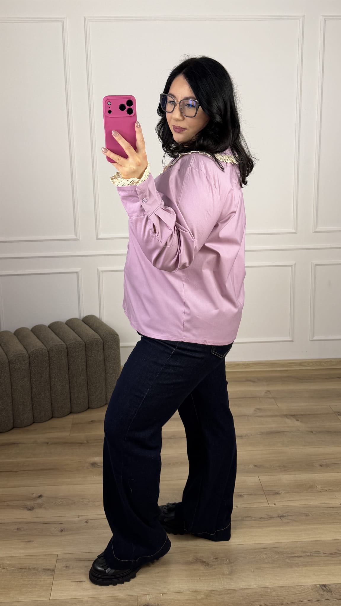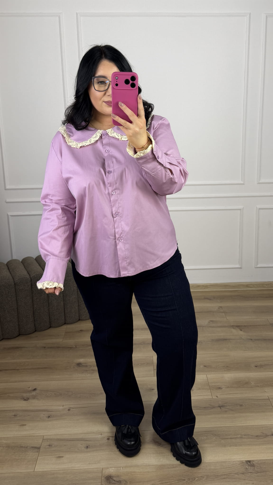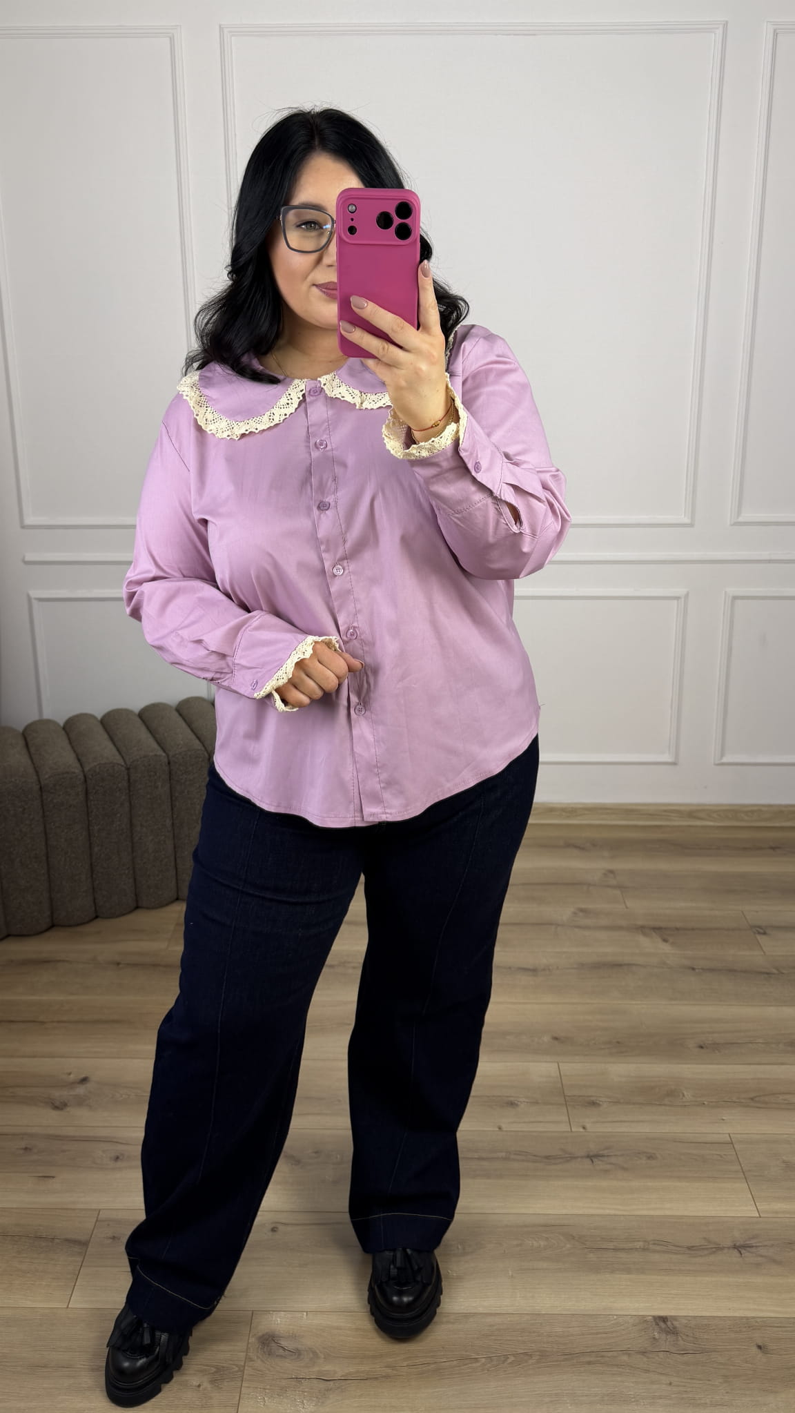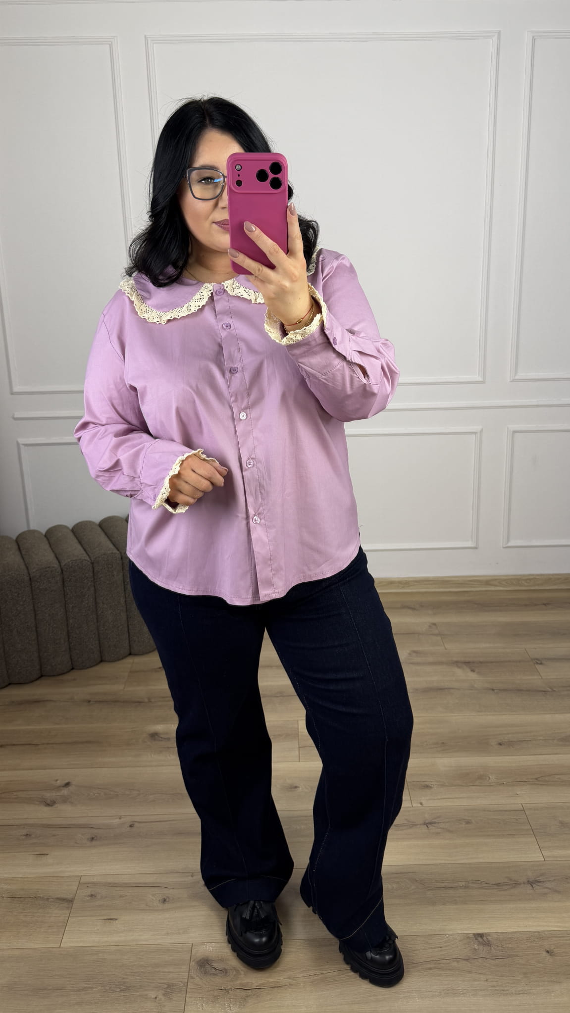 Bawełniana koszula o swobodnym, lekko rozkloszowanym kroju. Model zapinany na rząd guzików. Długi rękaw wykończony mankietem oraz ozdobnym haftem. Elegancji nadaje jej charakterystyczny ozdobny kołnierzyk z subtelnym haftem. Model totalnie kobiecy i romantyczny, sprawdzi się idealnie na co dzień jak i na większe wyjścia. Koszula dostępna w czterech kolorach.