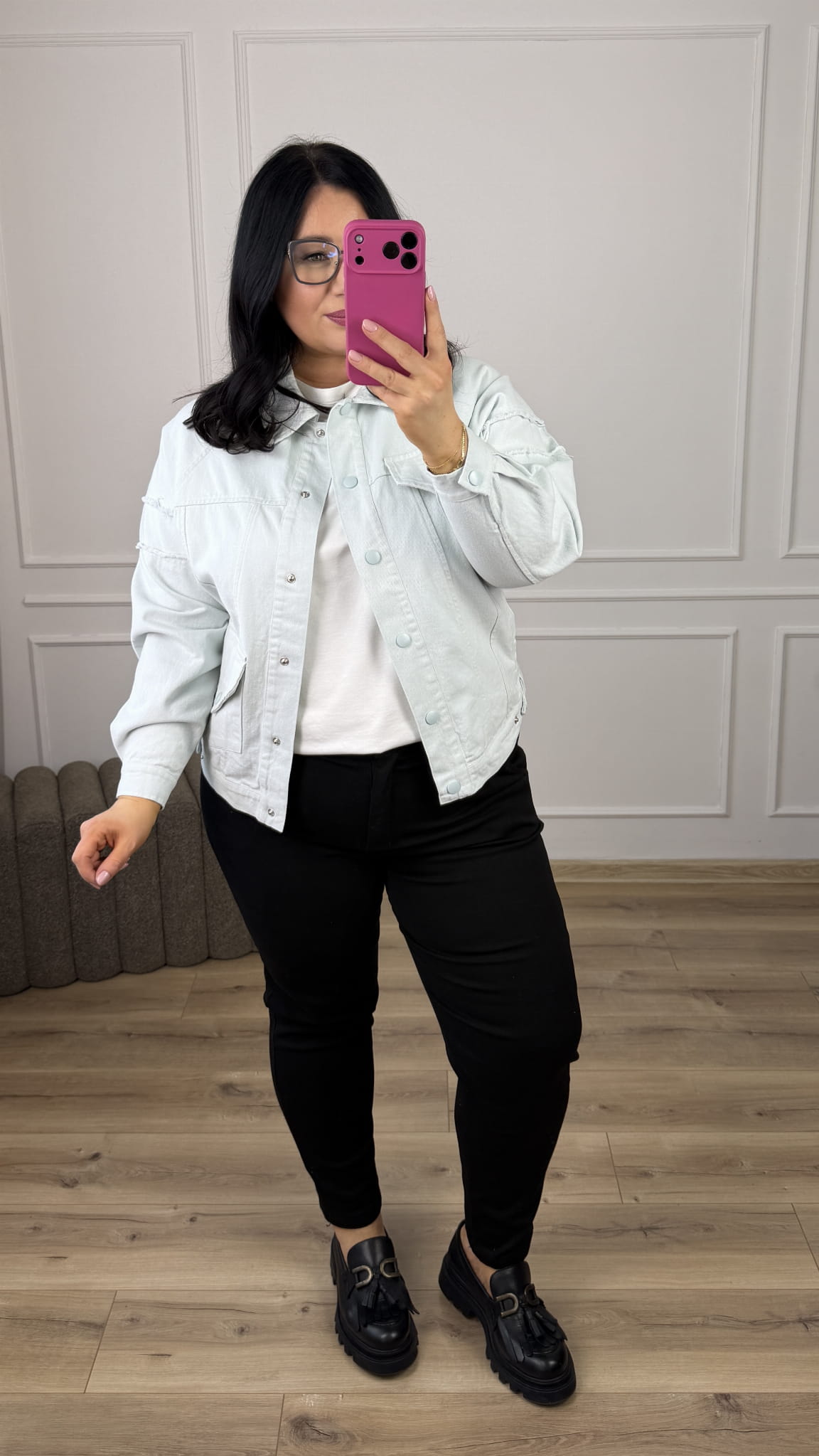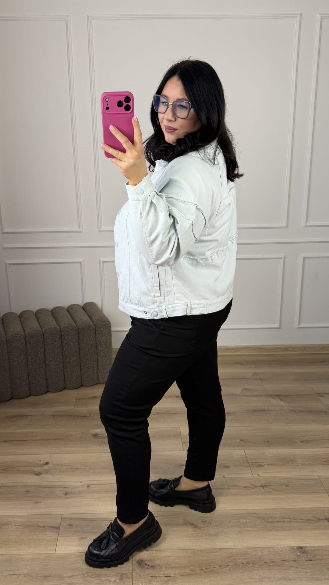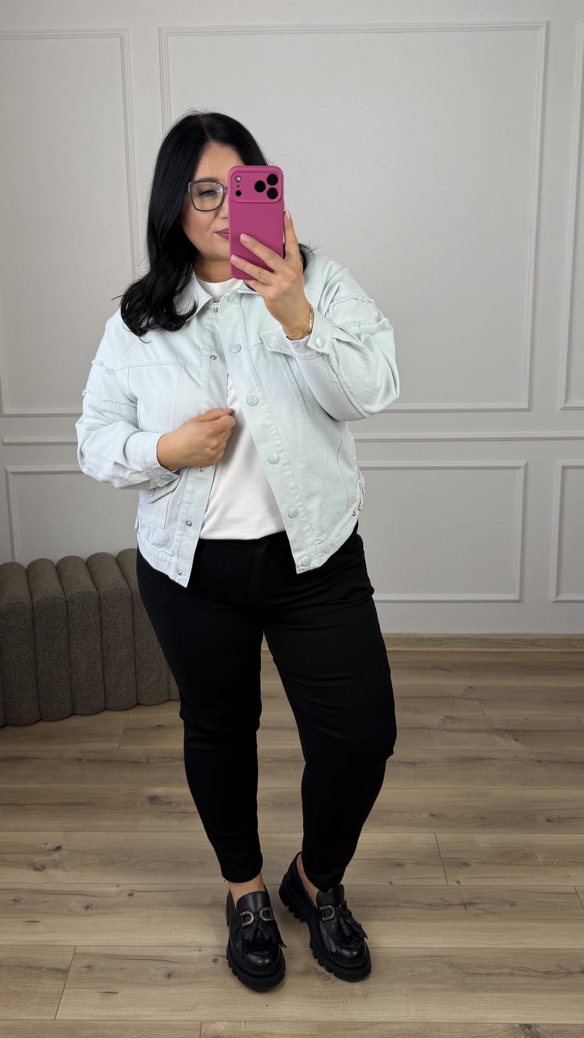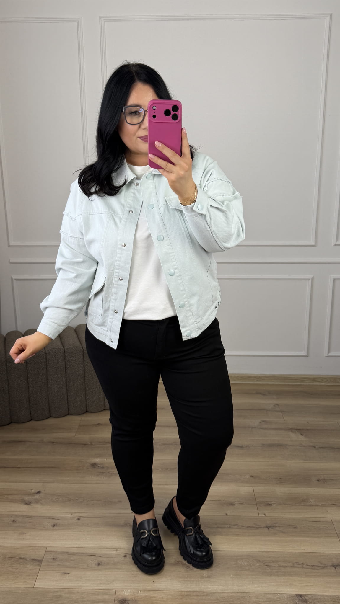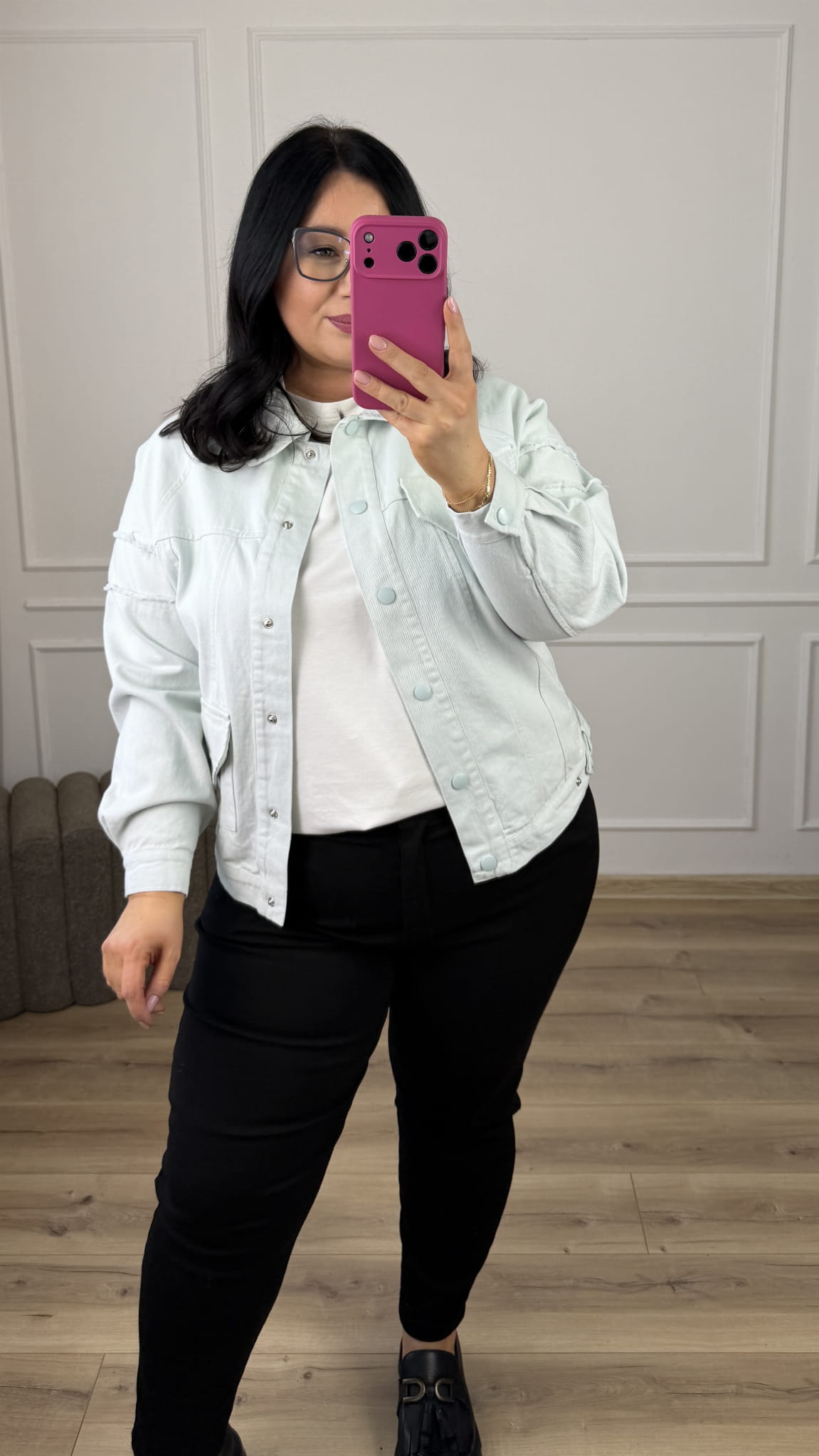 Jeansowa kurtka w kolorze. Klasyczny krój zwężany ku dołowi, zapinany na napy. Model posiada duże kieszenie z przodu oraz długie rękawy. Świetny klasyczny krój idealnie sprawdzi się do wiosennych casualowych stylizacji.
