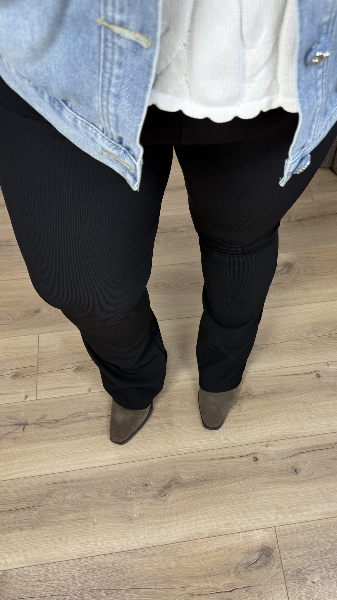 Legginsy o klasycznym kroju z nogawką typu flare z modelującego materiału prążkowanego który dopasowuje się do sylwetki. Legginsy w pasie posiadają szeroką gumę. Tył legginsów jest gładki. Model idealnie wygładza i modeluje sylwetkę. Klasyczna dopasowująca się do figury nogawka rozszerzona na dole świetnie modeluje sylwetkę. Legginsy wykonane są w pełni z kryjącego i ściągającego materiału Line Softex. Legginsy dzięki swojej uniwersalności idealnie sprawdzą się na co dzień do casualowych stylizacji, jak i do eleganckich.