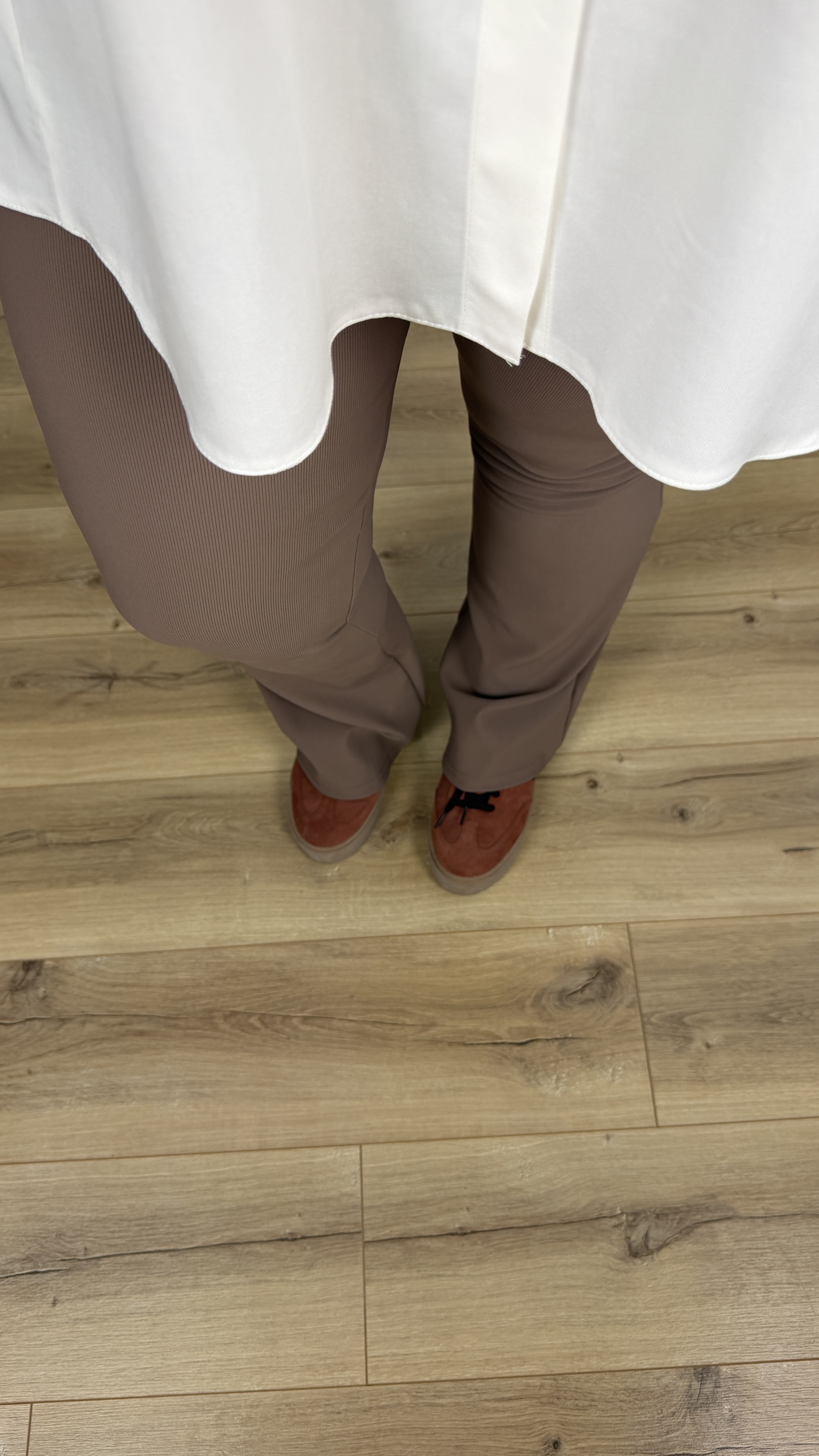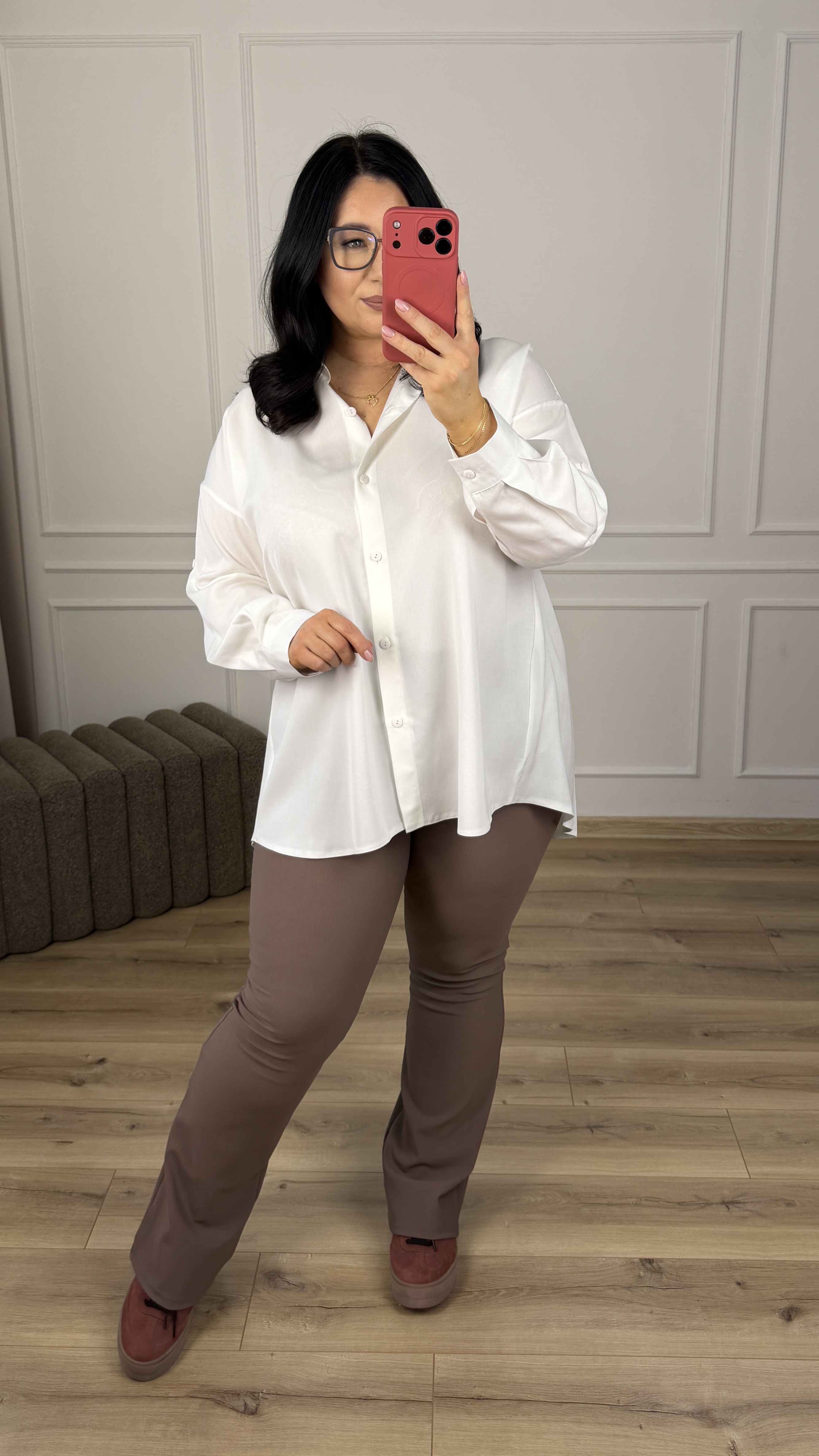 Legginsy o klasycznym kroju z nogawką typu flare z modelującego materiału prążkowanego który dopasowuje się do sylwetki. Legginsy w pasie posiadają szeroką gumę. Tył legginsów jest gładki. Model idealnie wygładza i modeluje sylwetkę. Klasyczna dopasowująca się do figury nogawka rozszerzona na dole świetnie modeluje sylwetkę. Legginsy wykonane są w pełni z kryjącego i ściągającego materiału Line Softex. Legginsy dzięki swojej uniwersalności idealnie sprawdzą się na co dzień do casualowych stylizacji, jak i do eleganckich.