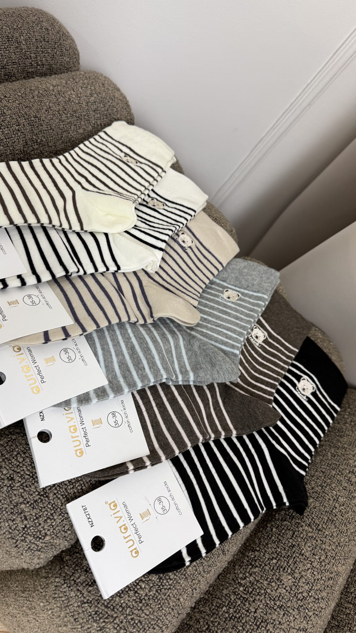 Damskie skarpetki bawełniane z haftowanym misiem. Wyjątkowy komfort noszenia.