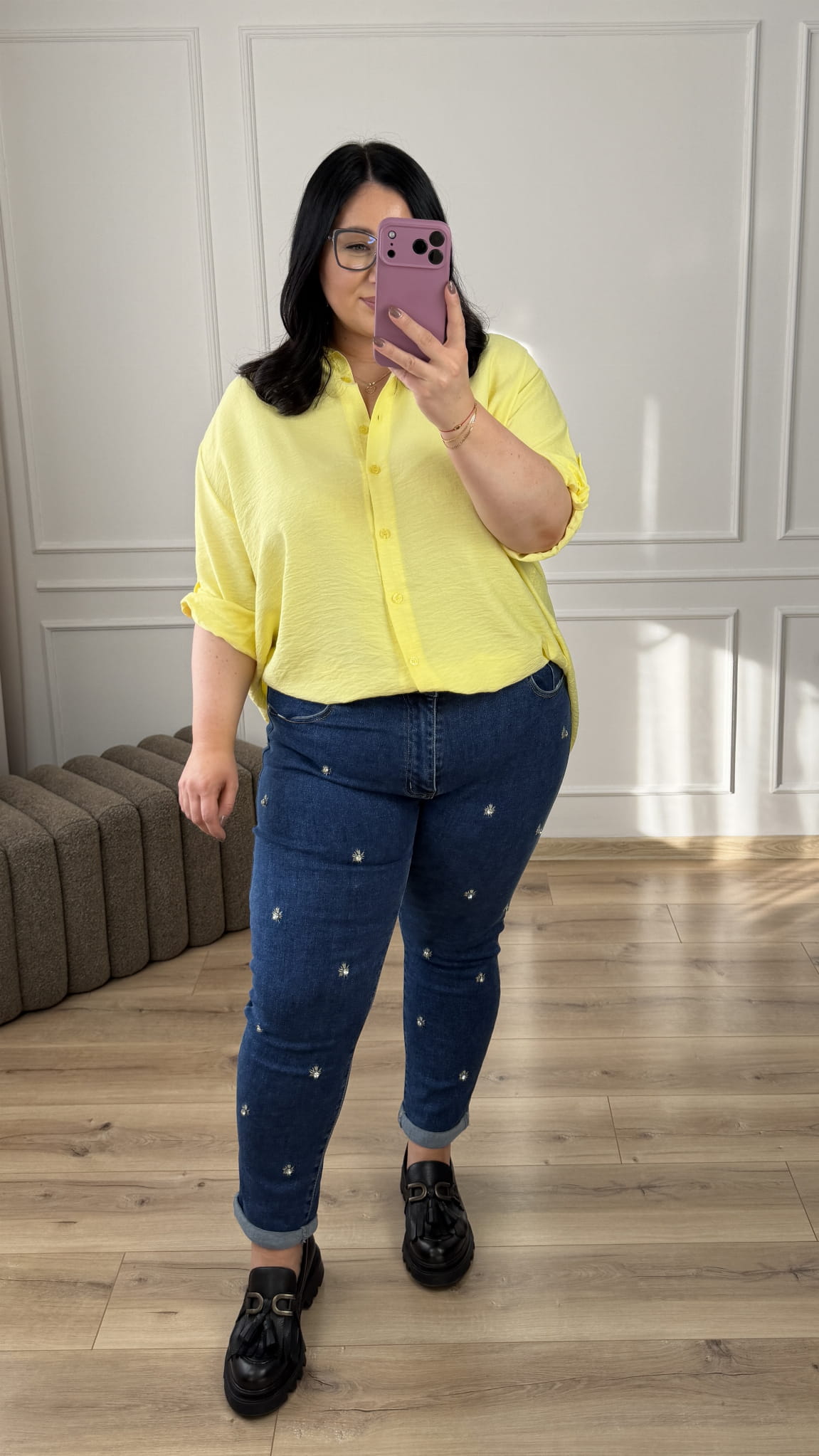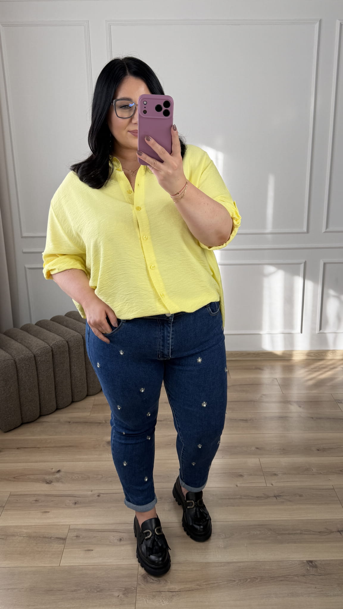 Klasyczny model spodni z ciemnego jeansu z efektownymi obszyciem z przodu wypełnionymi diamencikiem. Model z obcisłą dopasowaną nogawką. Dopasowany krój pięknie podkreśla sylwetkę, a elastyczny materiał sprawia, że spodnie dopasowują się do ciała, nie krępując ruchu.