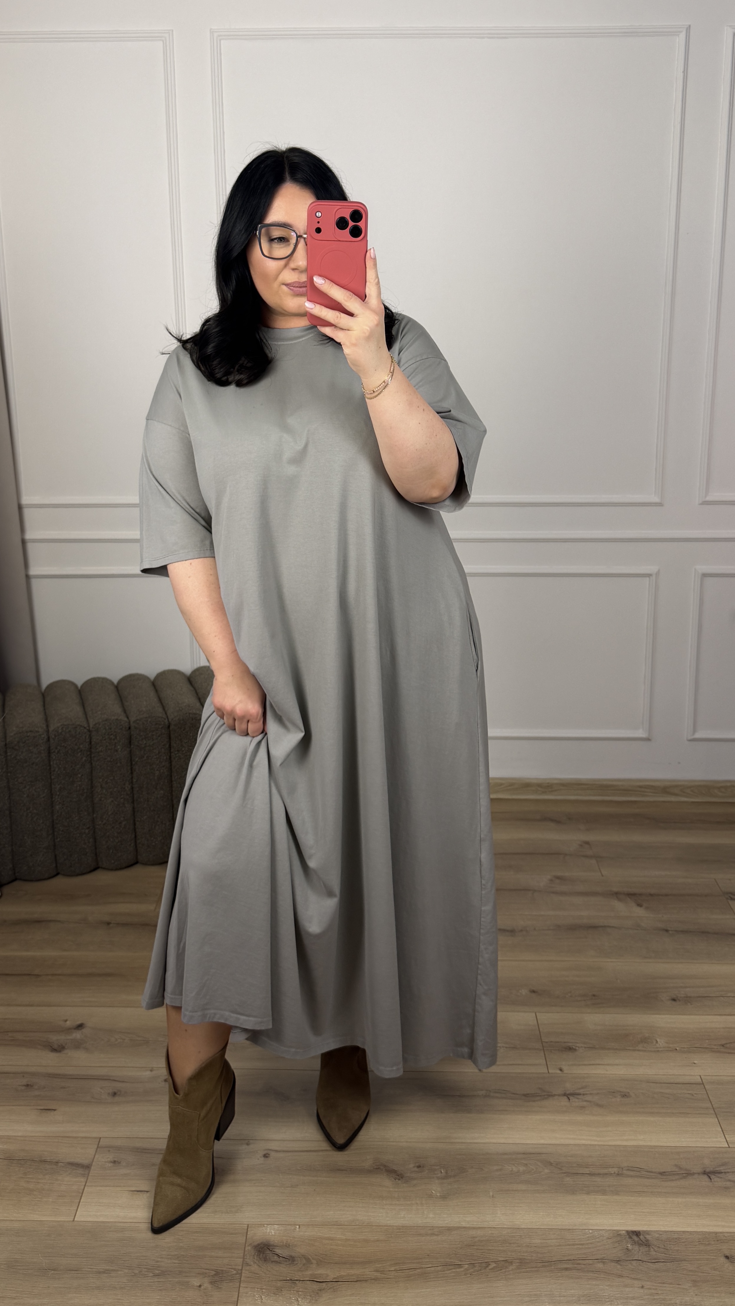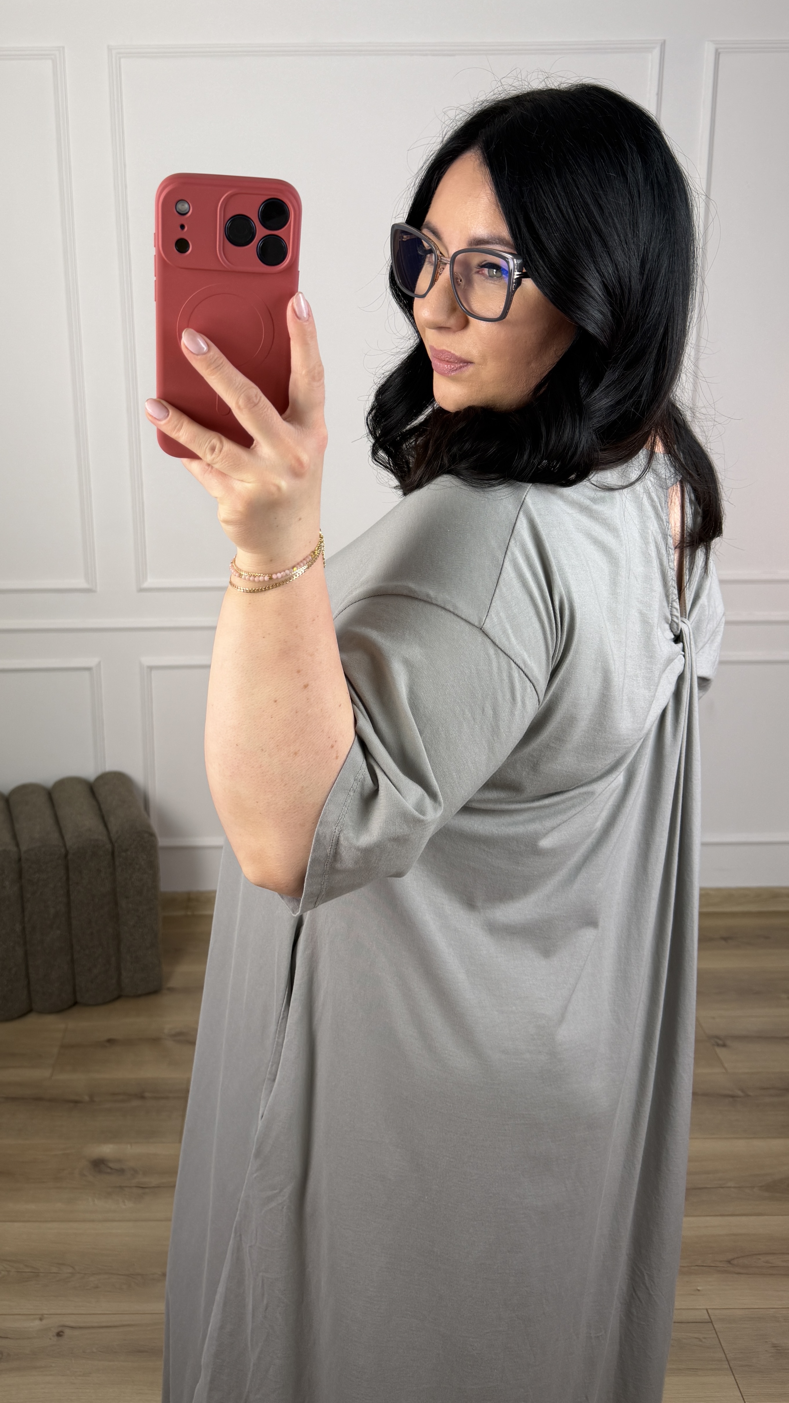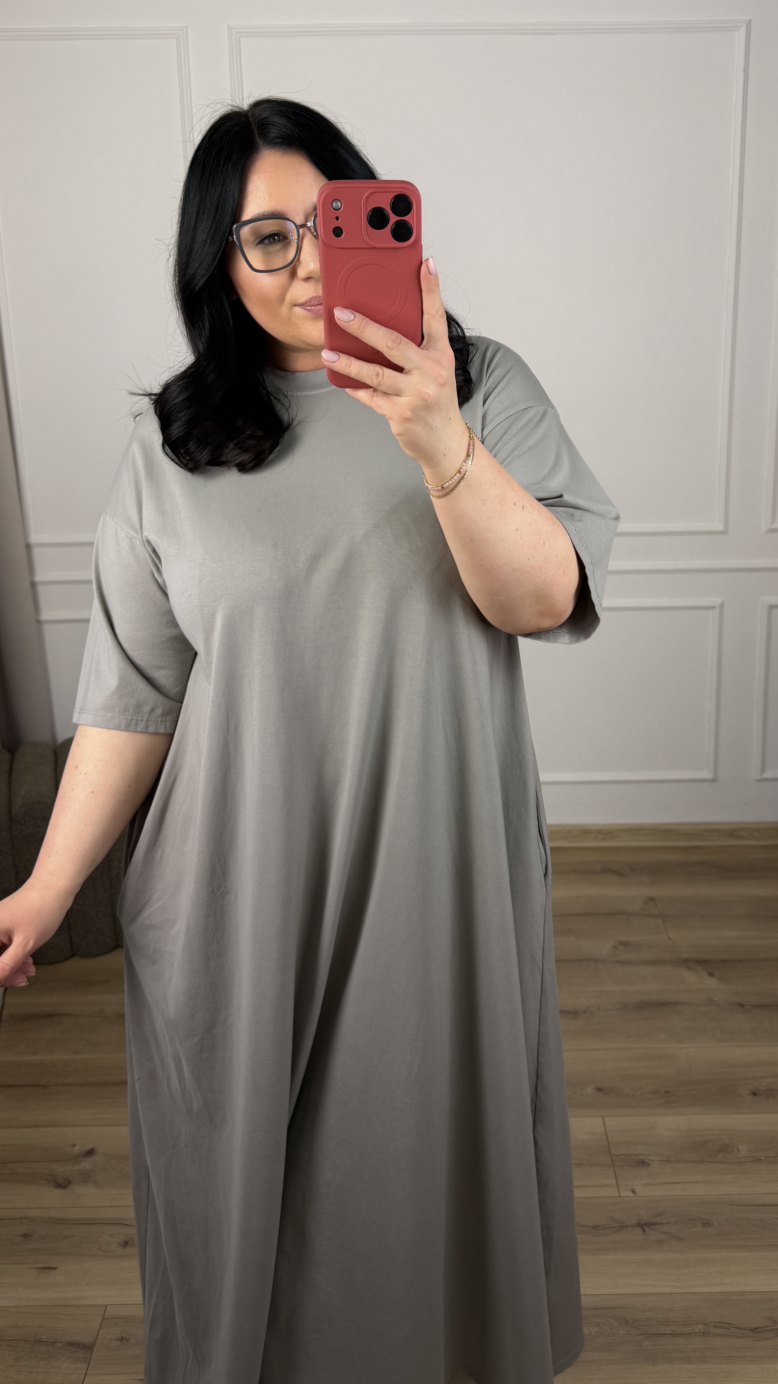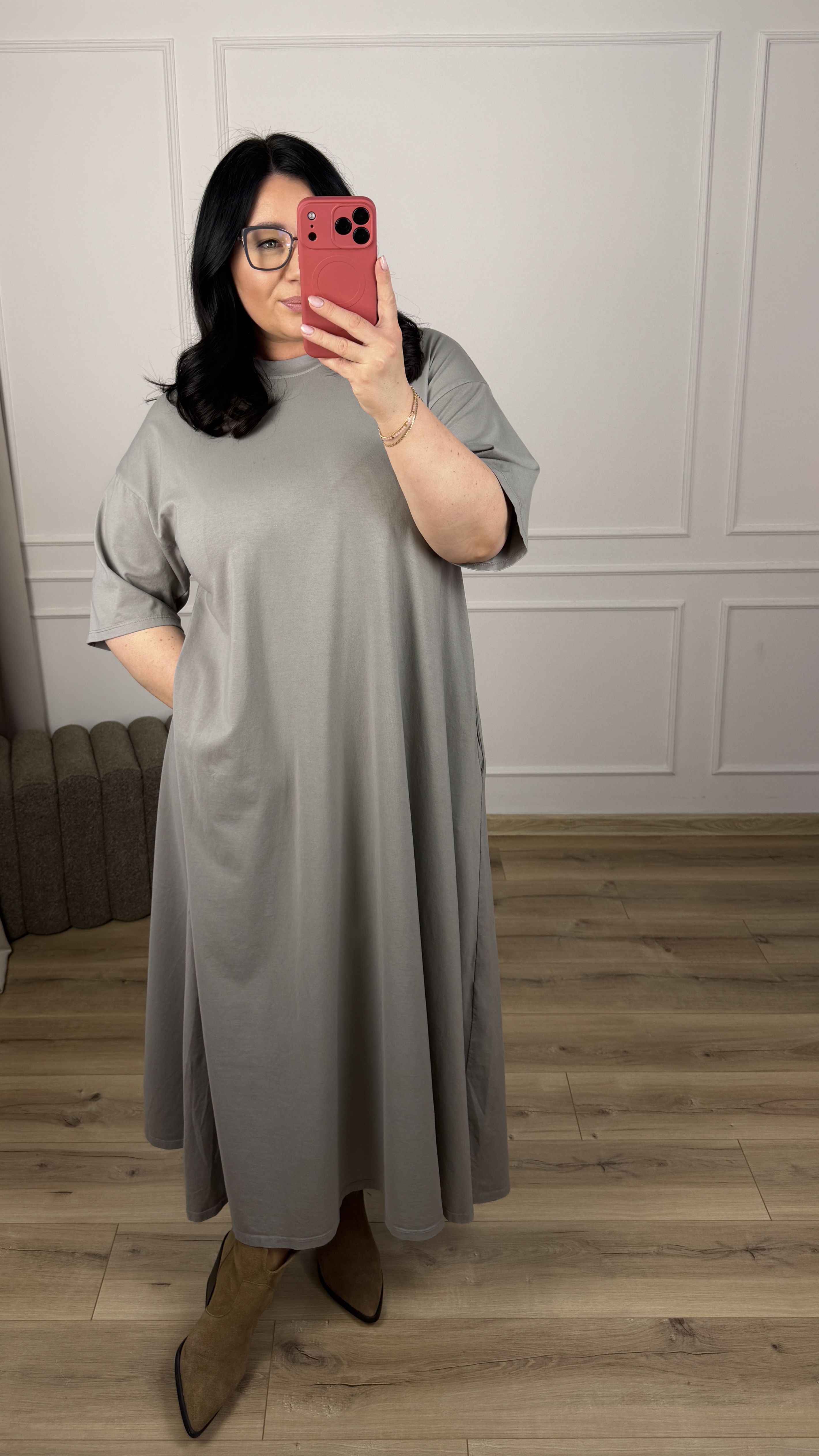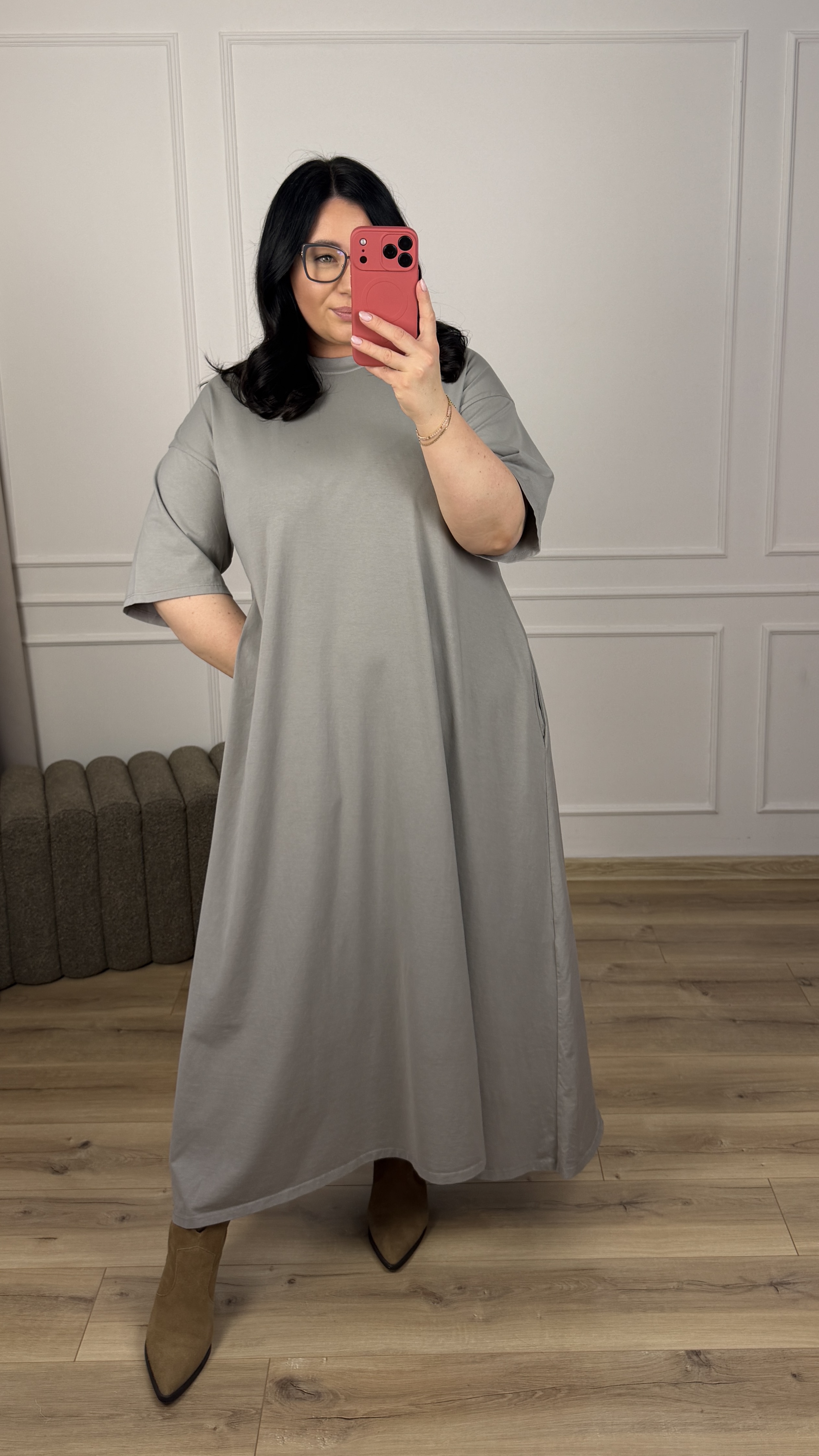 Stylowa sukienka bawełniana o luźnym kroju to idealna propozycja na co dzień. Model o luźnym fasonie zapewnia swobodę ruchu i komfort noszenia, jednocześnie wpisując się w casualowe stylizacje. Sukienka posiada krótki rękaw, kieszenie oraz delikatną łezkę z marszczeniem materiału na plecach. Rozszerzany ku dołowi krój który świetnie sprawdzi się w połączeniu z sandałami czy sneakersami.