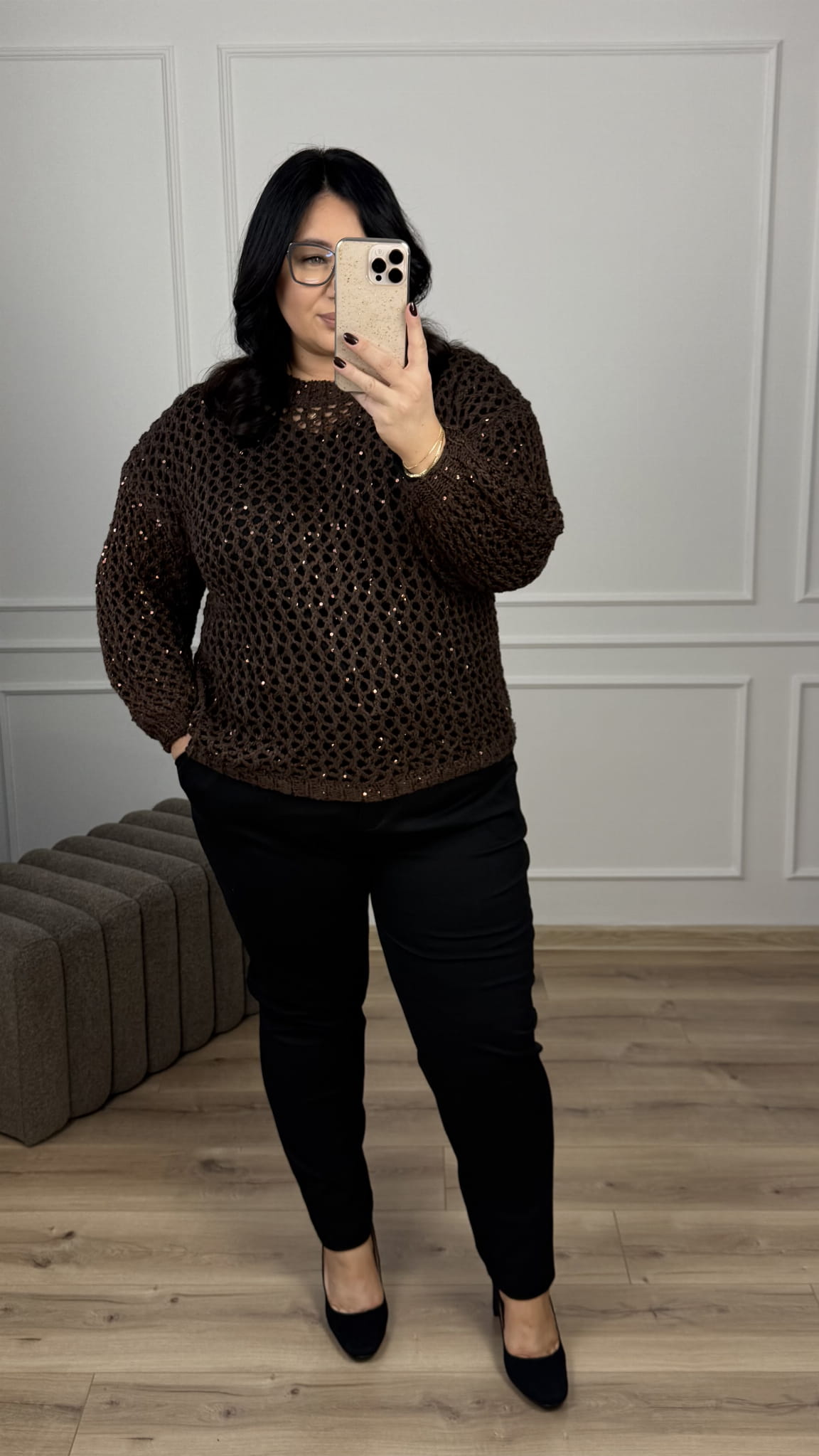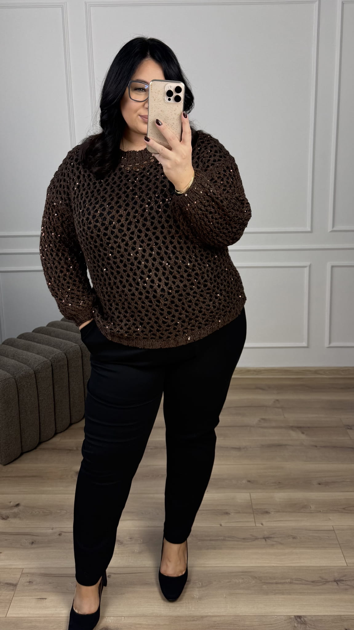 Sweter SIATKA - czekolada