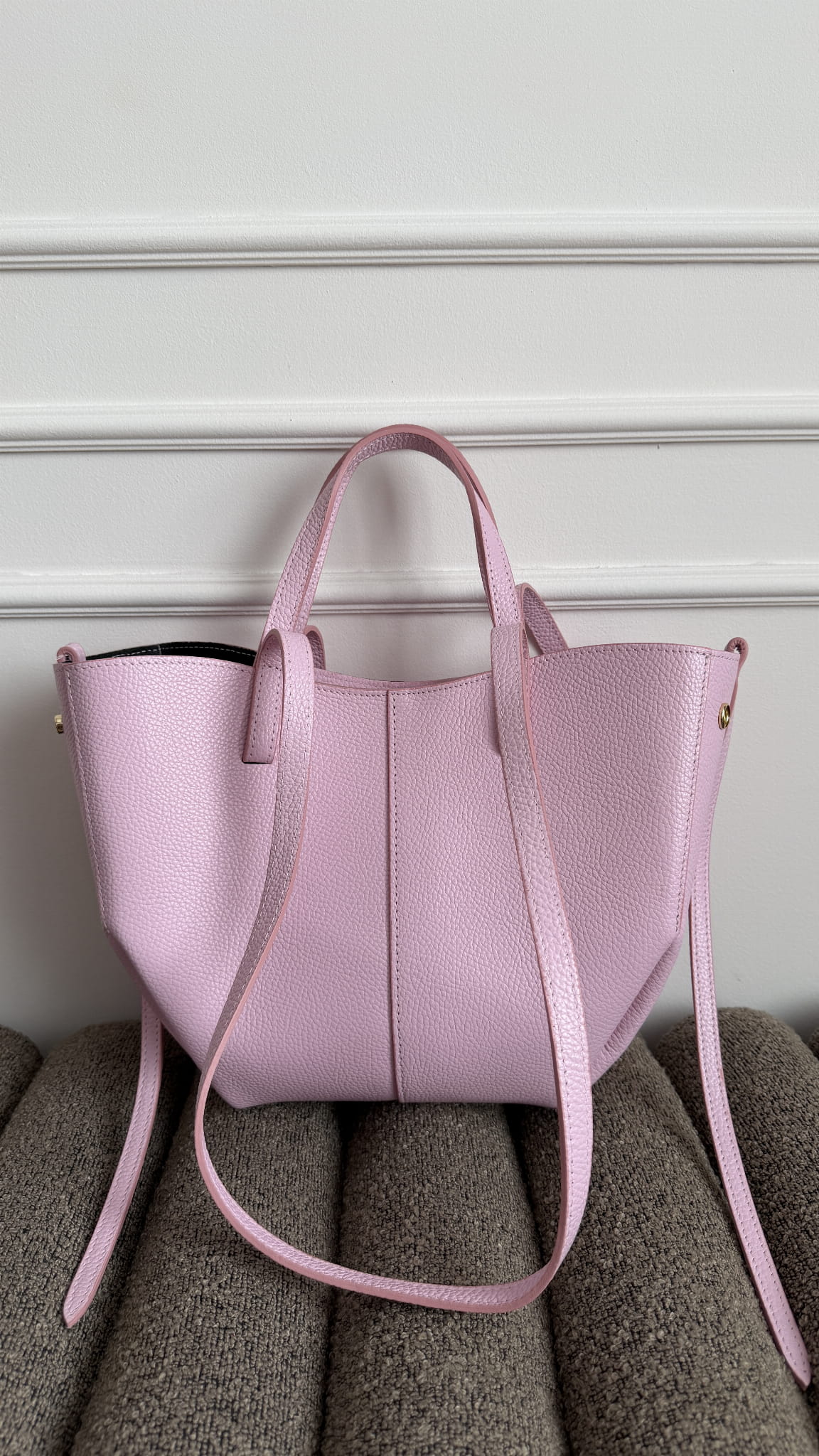 Klasyczna ponadczasowa torebka wykonana ze skóry naturalnej, wielkości midi. Łącząca w sobie styl i wygodę noszenia. Torebka wyposażona jest w dwa uchwyty - krótki do noszenia w dłoni oraz dłuższy na ramię. Torebka posiada zapinane napy dzięki którym można regulować jej wielkość. Torebka zapinana na suwak, we wnętrzu kryje się praktyczna kosmetyczka np. na portfel czy drobiazgi. Model KELLY doskonale sprawdzi się zarówno na co dzień, jak i do bardziej eleganckich stylizacji.