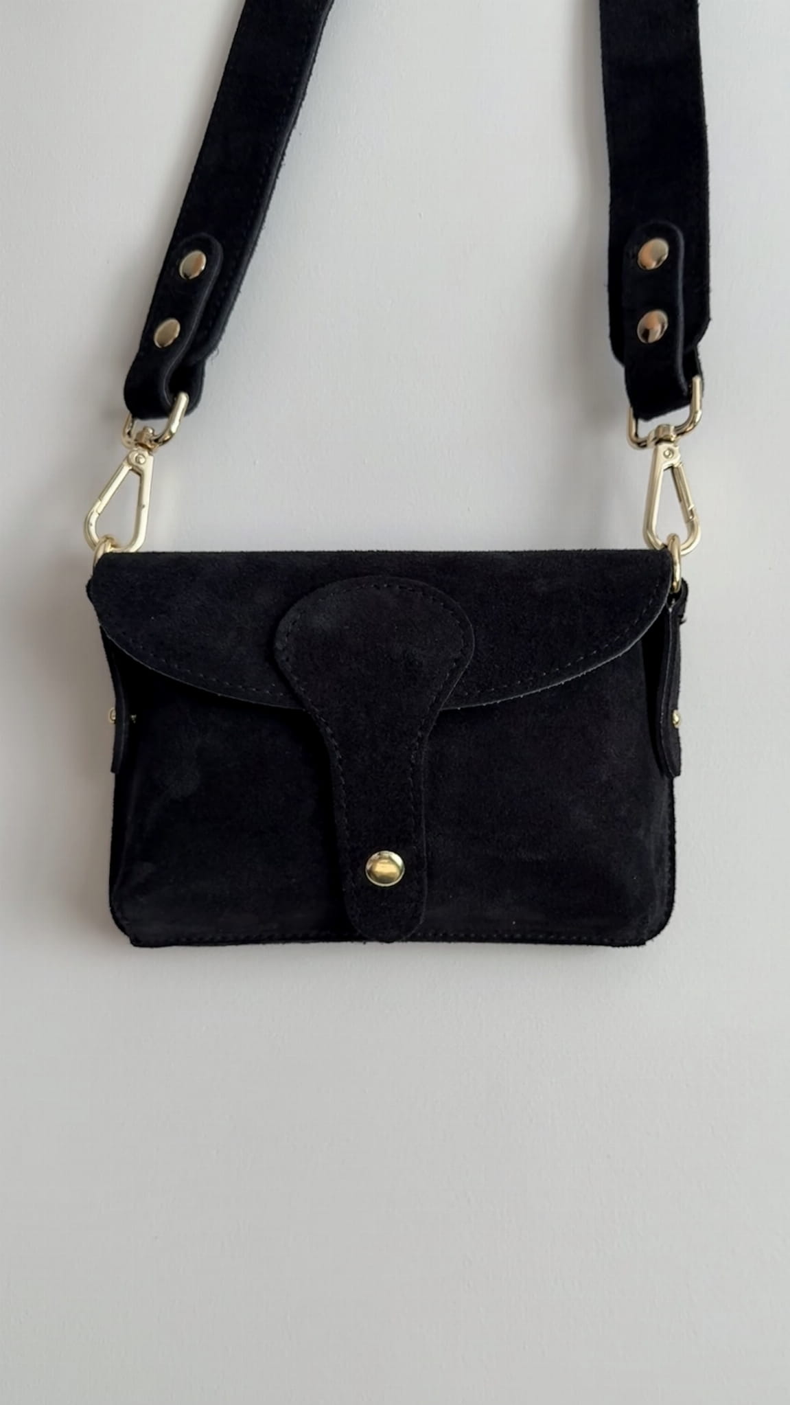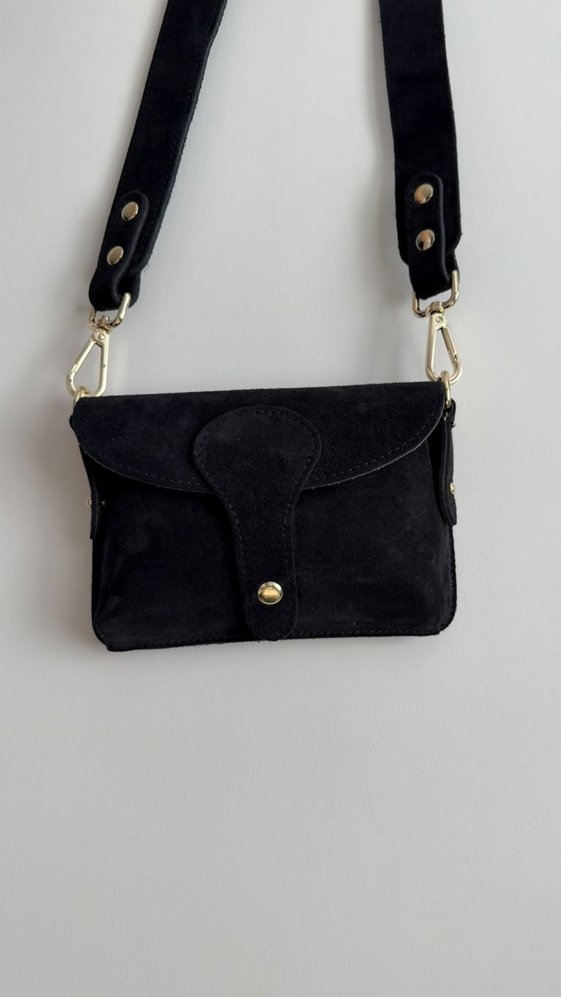 Malutka torebka typu crossbody. Wykonana z wysokiej jakości skóry zamszowej łączącej w sobie funkcjonalność. Zapinana na wygodny nap, który dodaje jej subtelnej elegancji i zapewnia szybki dostęp do zawartości. Mały rozmiar i wygodny gruby pasek sprawdzą się jako idealny dodatek na co dzień.