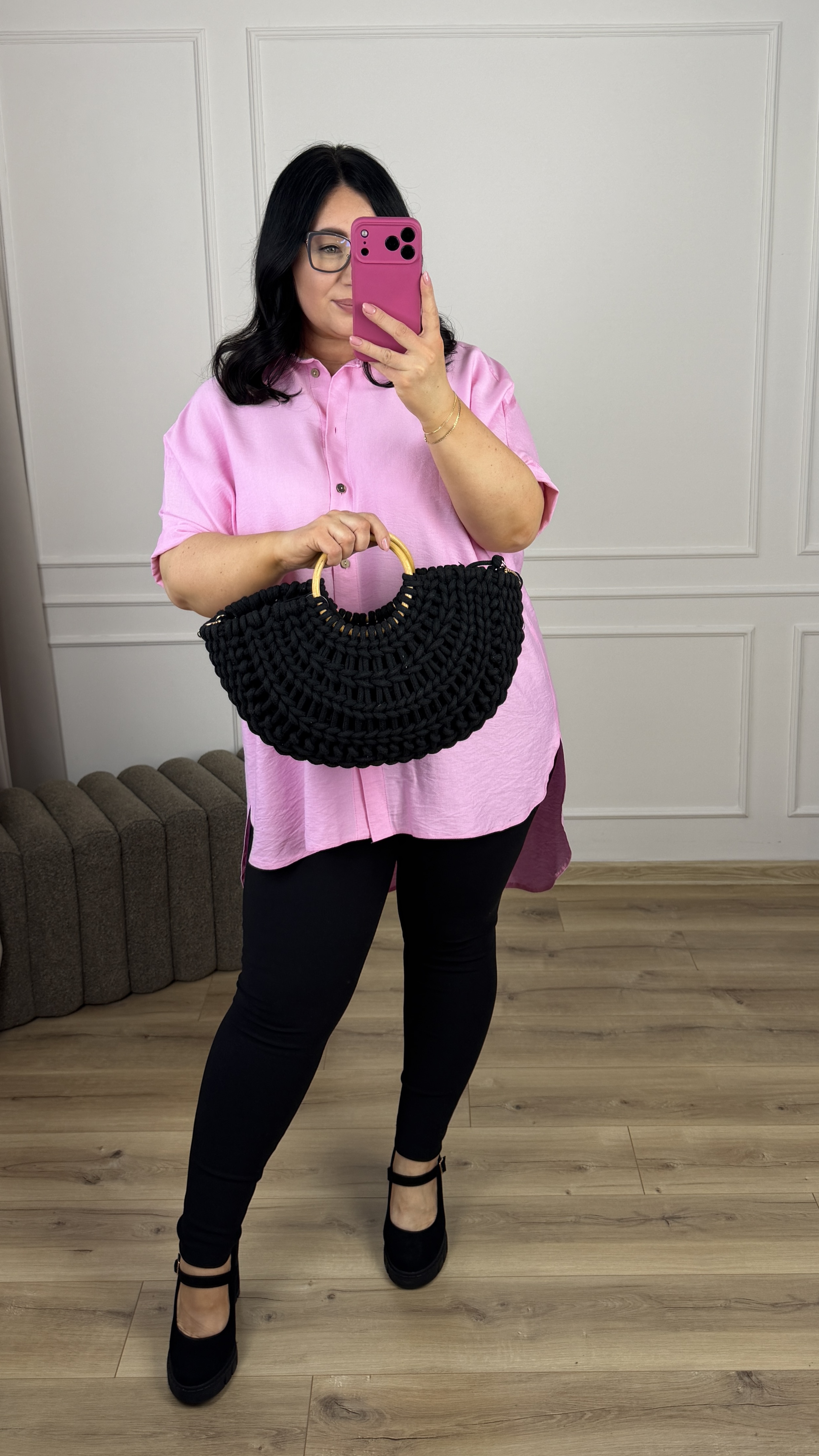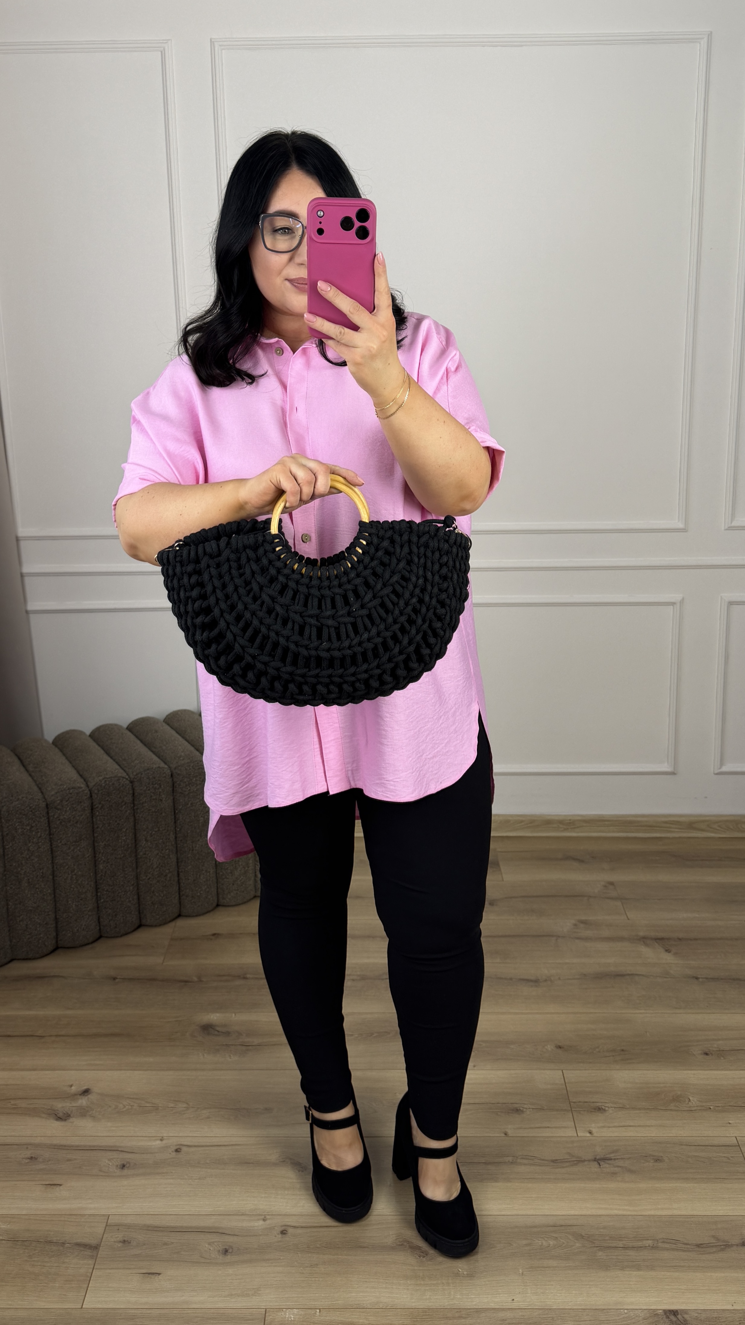 Pleciony efektowny koszyk z drewnianymi rączkami. Klasyczny model wielkości midi łączący w sobie styl i wygodę noszenia. Torebka wyposażona jest w dwa uchwyty - krótki - drewniany do noszenia w dłoni oraz dłuższy pasek na ramię. Torebka posiada kosmetyczkę w środku dzięki czemu można wygodnie schować drobiazgi.